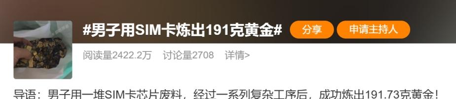 惊了!男子竟用SIM卡炼出191.73克黄金,价值超21万?这热搜刚出来,全网都