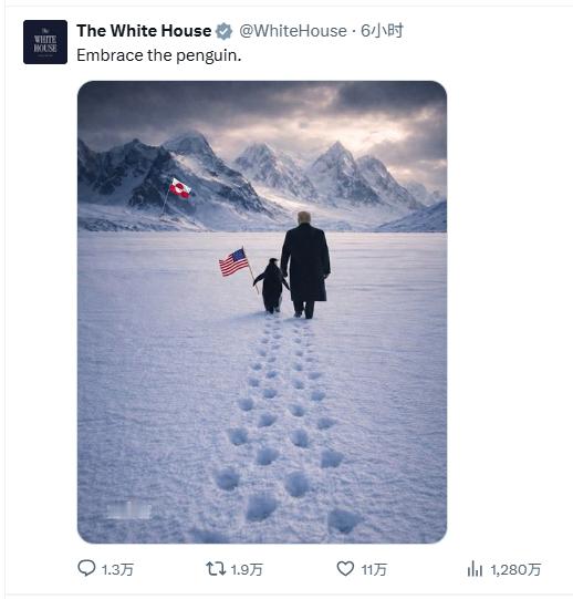大早上起来给我笑吐了,《非诚勿扰2》封神了!白宫发了一张阿川在格陵兰岛上领着企鹅拿着美国国旗的图(图片上是格陵兰国旗),配文:拥抱企鹅。已经转疯了。所以问题来了:为什么阿川不吃企鹅宝宝? 因为格陵兰在北极!企鹅在南极!