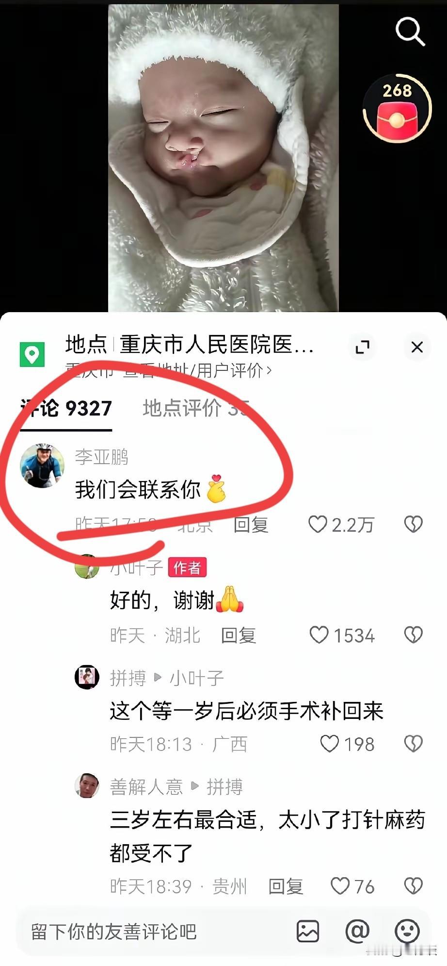 看到李亚鹏的回复,真是惊呆了!为这样的顶开立地的汉子点个赞。网友在抖音晒出自己的孩子,他的孩子也是天生的唇腭裂。可能初为父母既高兴也苦恼,想不到被李亚鹏刷到了,而且李亚鹏还在抖音上回复了他,我们会联系你。短短几个字,就把希望送给了这位网友。不论是李亚鹏本人的回复,还是他助理的回复,这真的反映了这位铁铮铮的汉子为唇腭裂患者家属着想的情怀怪不得有网友说李亚鹏像佛祖,他的佛光普照天底下唇腭裂患者及其家属!李亚鹏真的做了一件功德无量的好事。。