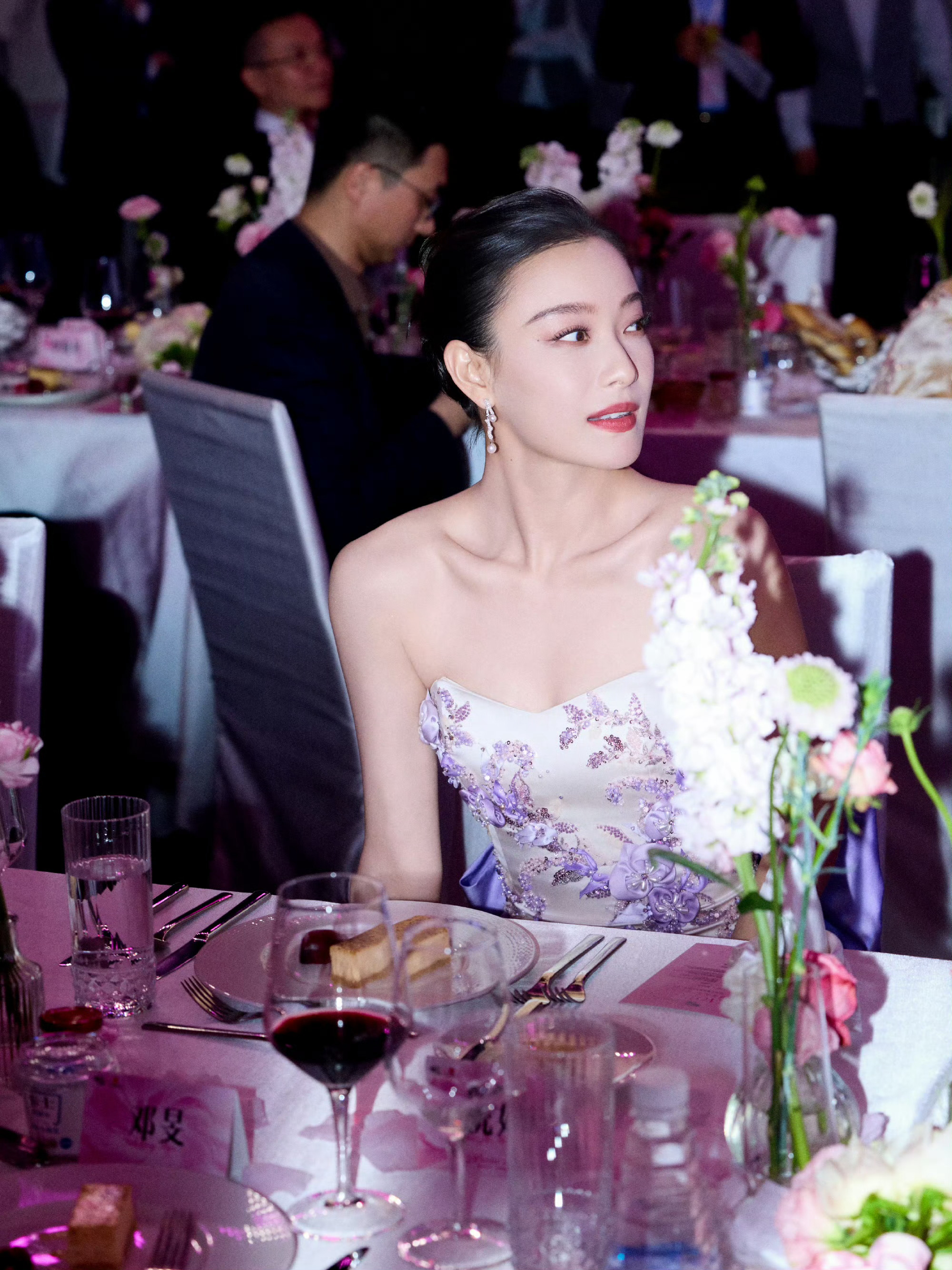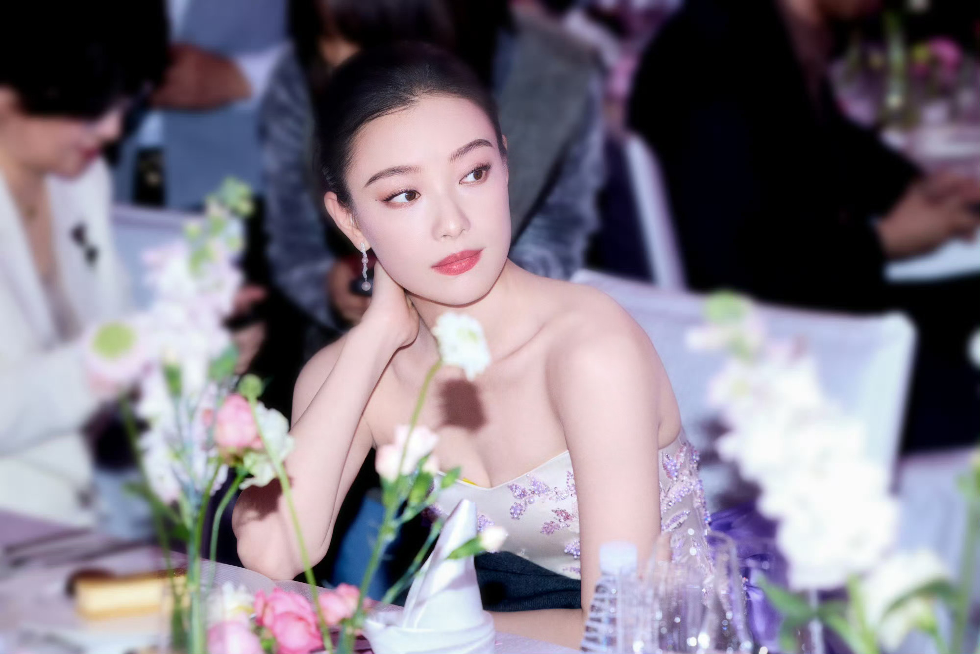 谭乔伊 一袭蓝底刺绣旗装