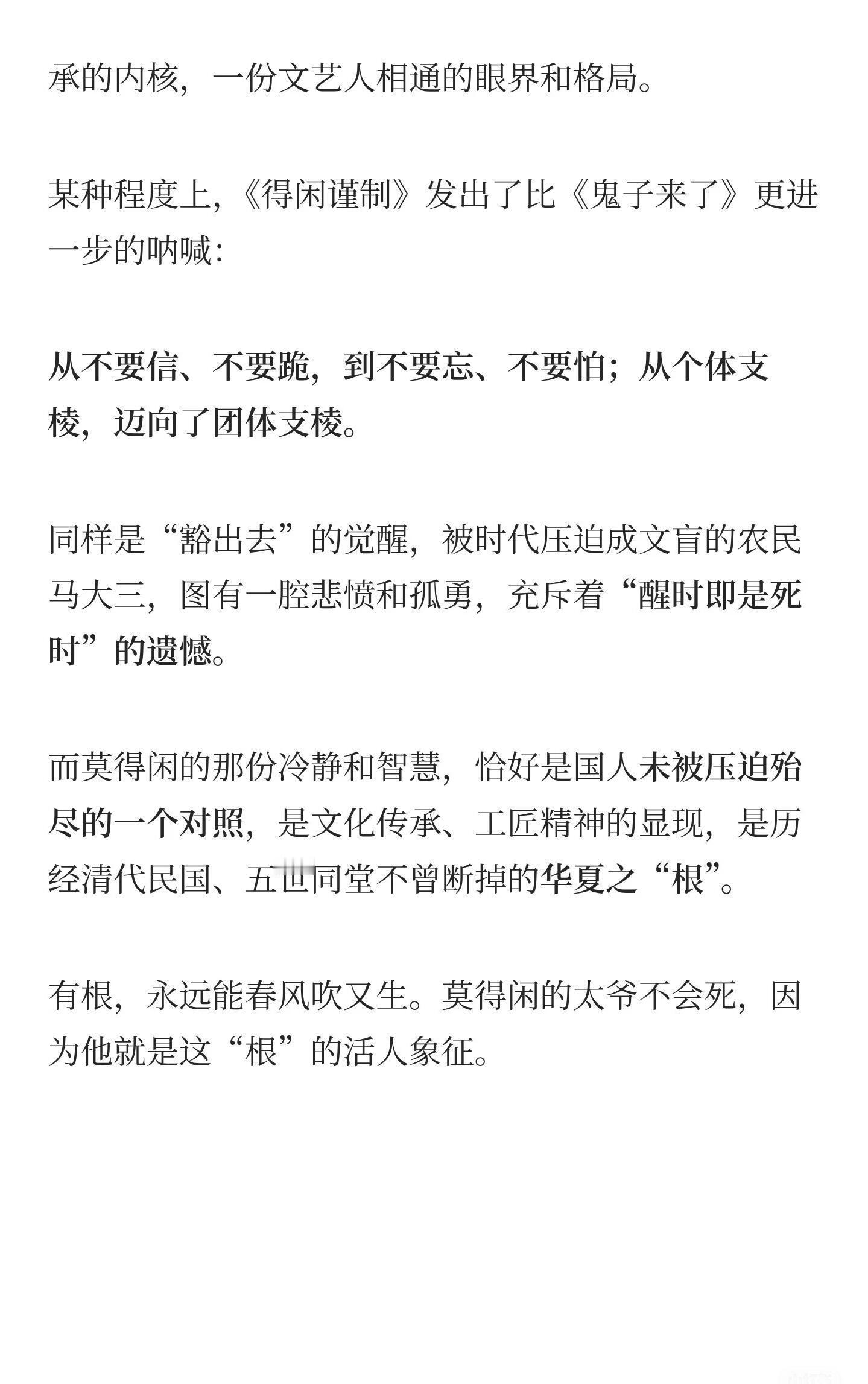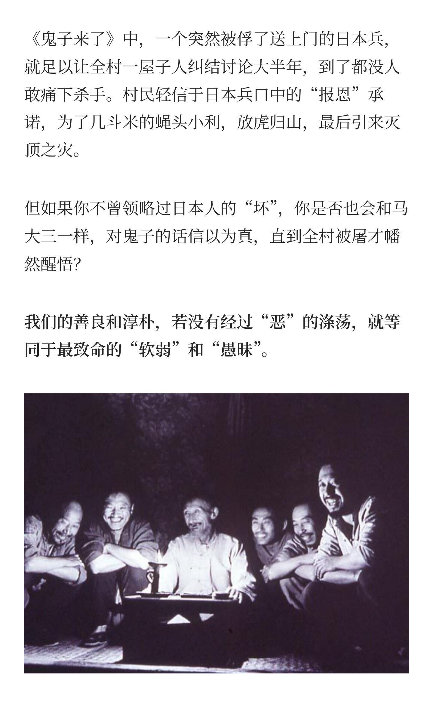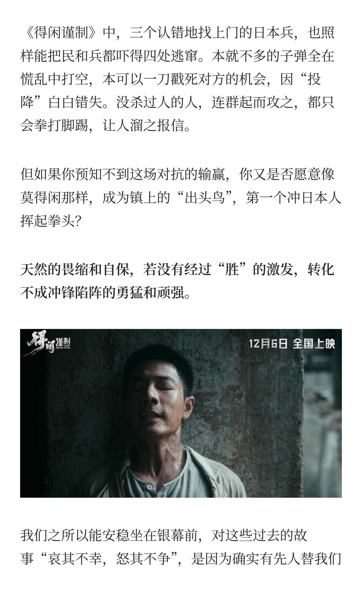 网友就姜文《鬼子来了》和兰晓龙《得闲谨制》两部作品探讨了“抗日”的深层内核,抗日电影的本质!抗日不仅是对抗外敌,更是对抗我们自身的“奴性”“软弱”与“愚昧”,比如《鬼子来了》里马大三式的麻木轻信、《得闲谨制》里戈止镇民众的自我麻痹与畏缩自保。真正要抵抗的,是因内部溃散而引发的历史轮回,是模糊的记忆、退让的底线与面对危险时的本能逃避。兰晓龙其实多部作品一直在强调,我们不能混日子,小心被日子混了!文化战也是战争肖战得闲谨制真的是一部被严重低估的优秀电影!跨年电影愿