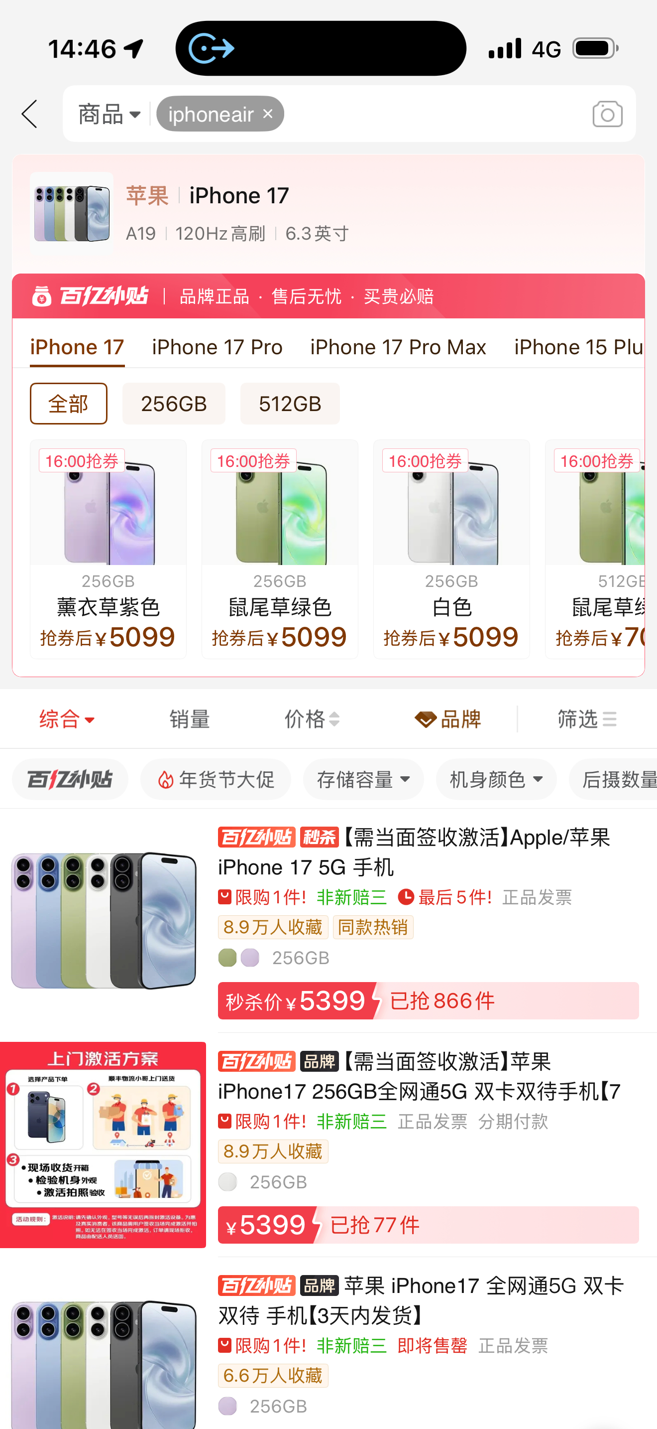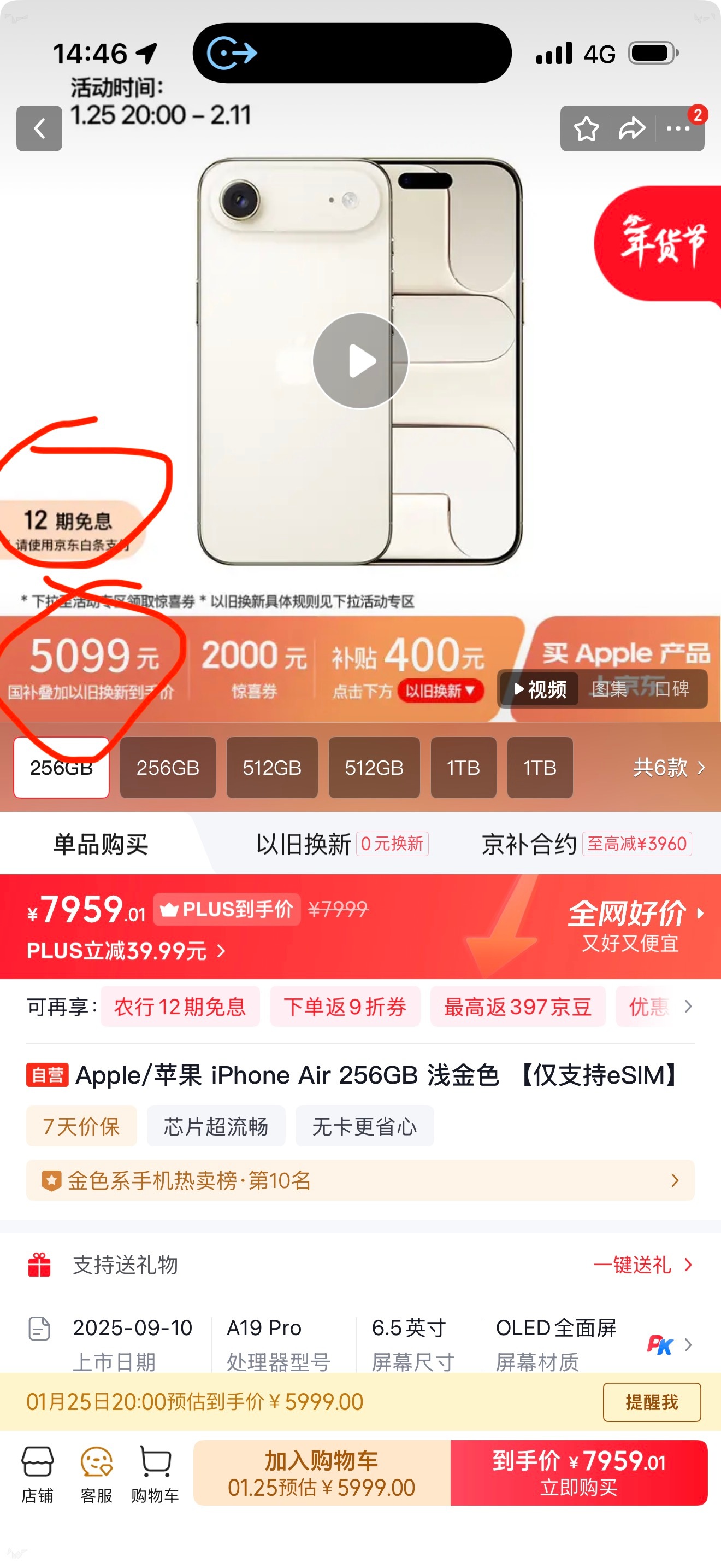 京东真的猛,年货节给iPhone Air干到5099元,而且还12期免息目前天猫是5499元,那这么算下去,拼多多要是加入战斗,那岂不是4599元3800元美版还有什么活路啊,而且前两天华强北刚硬破iphoneair插卡