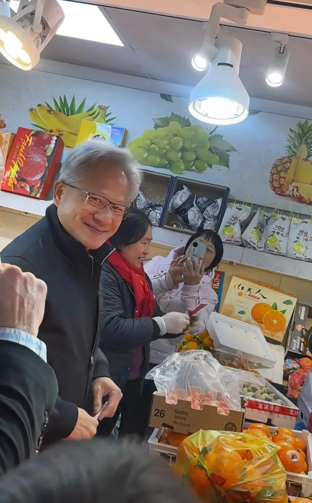 千亿科技大佬黄仁勋,现身上海。 63岁的他,满头白发,穿着一件黑色的外套,戴着眼镜,气质斯斯文文,穿搭普通,没有顶级富豪的架子,倒是有几分退休老干部的感觉。 他来上海视察工作,也在上海体验人情风俗,人间烟火。他在安保的陪同下,去菜市场转了转,给卖水果的阿姨签名,用磕磕巴巴的普通话问菜和水果的价钱,与路人同框合照,满脸笑容,全程配合。 这是他 2026年首度来内地,不知道今年能有什么收获。 别的不敢说,他的这种平易近人的态度倒是收获了路人的一波好感。[呲牙]