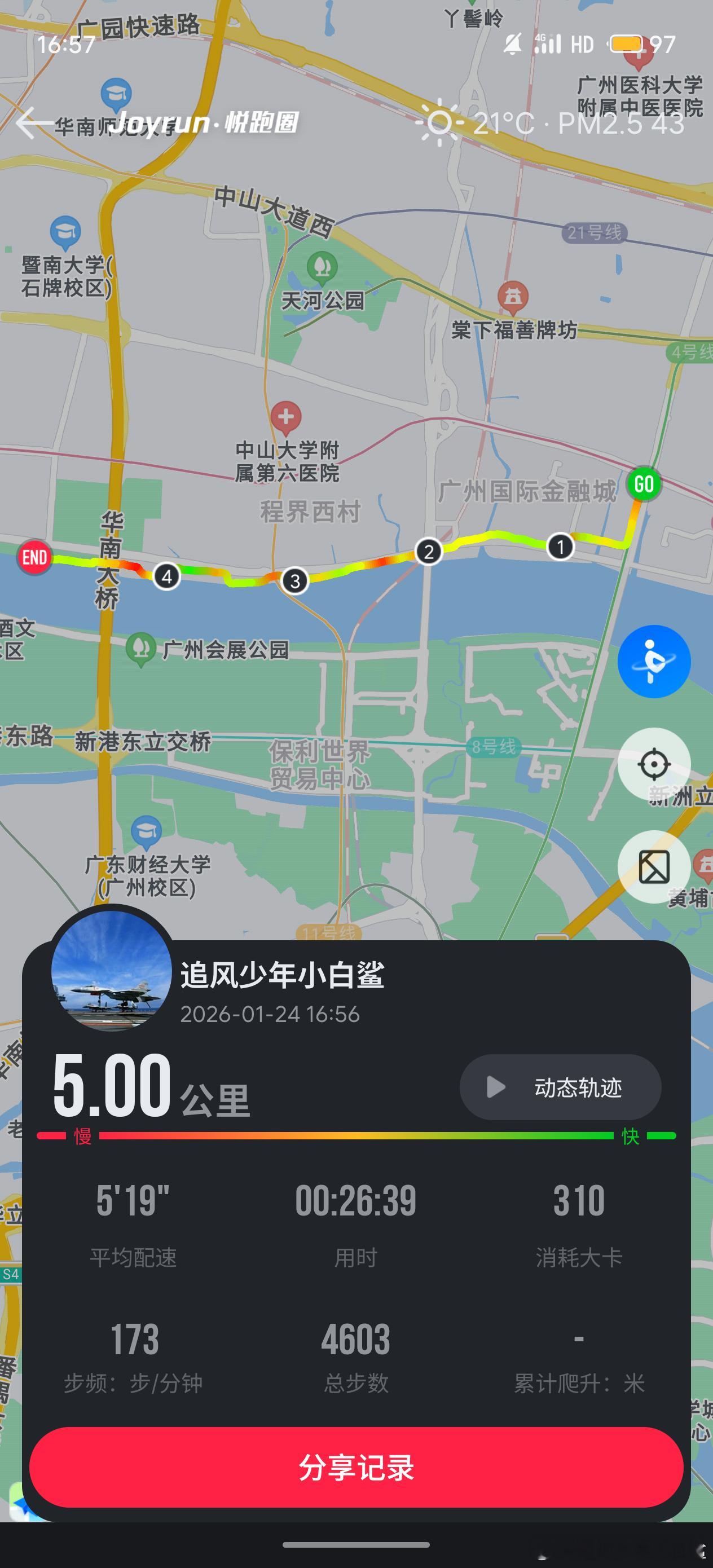跑步打卡再次光临海心沙相同配速,5公里+3公里跑完就不冷了 广州悦跑圈跑步 广州·海心沙
