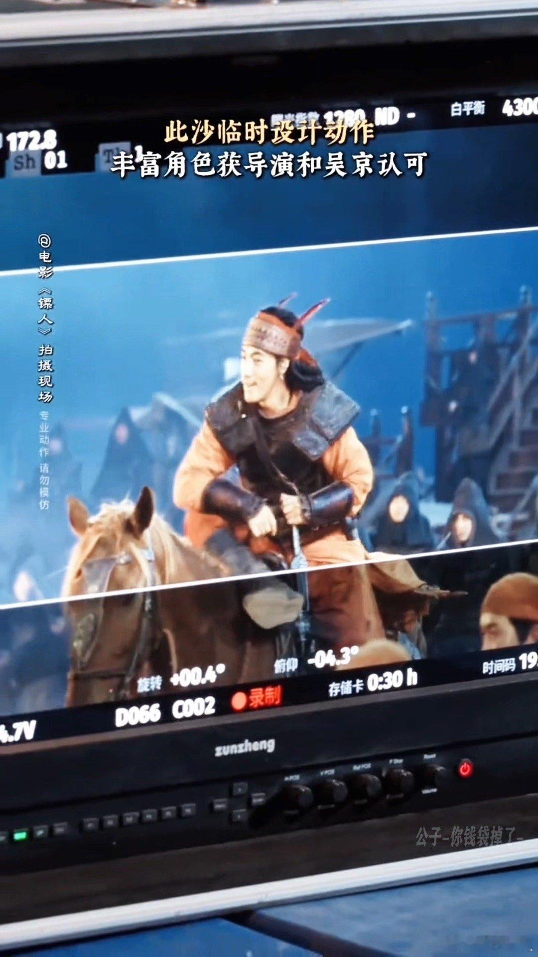 此沙一个动作秒切大漠可汗 此沙片场即兴设计翘腿动作,瞬间拿捏大漠可汗的狂妄嚣张,导演和吴京当场认可,这演技和巧思绝了