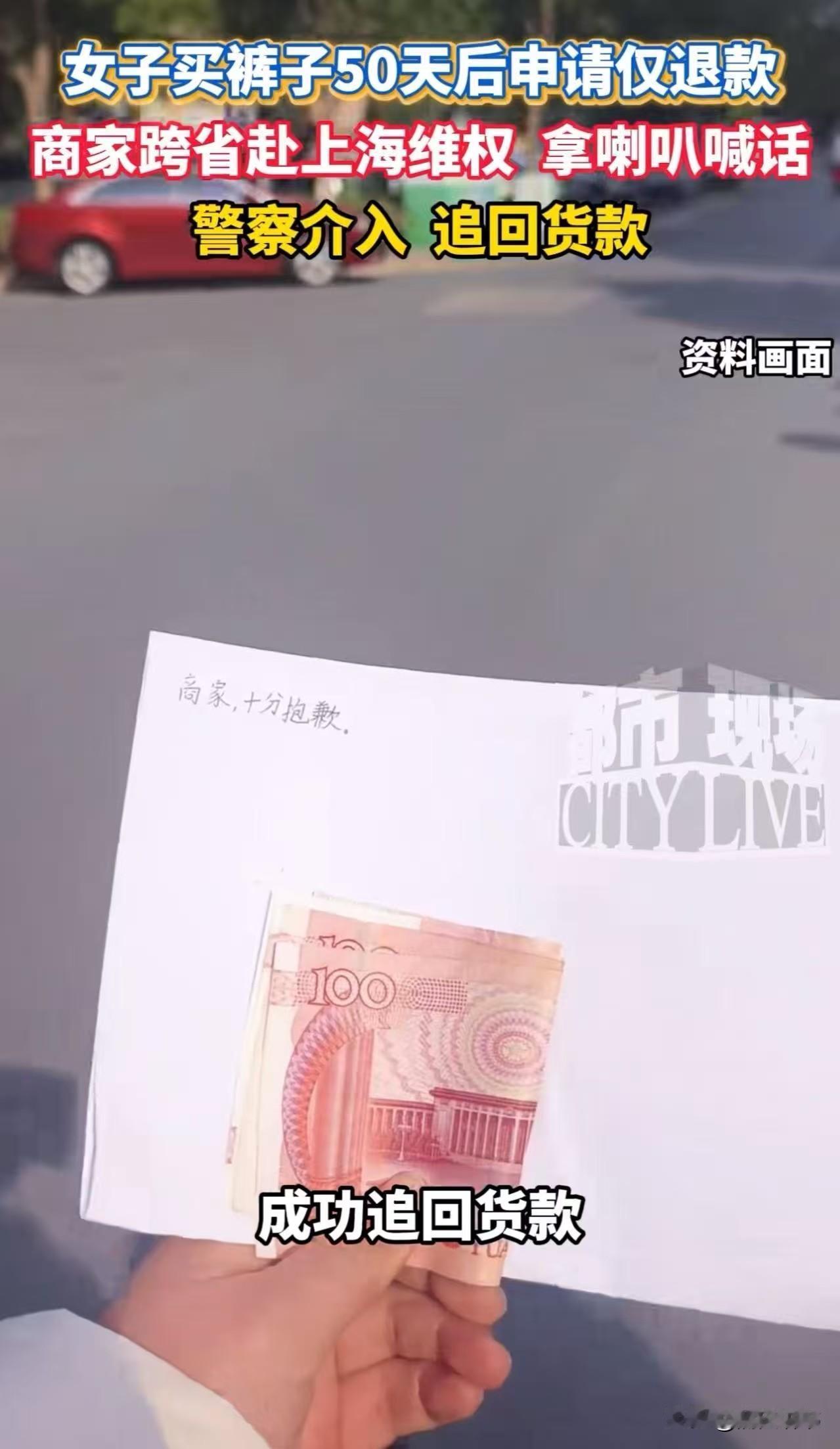 “就不惯着,直接贴脸开大!”上海,女子买裤子穿50天之后申请仅退款!商家拒绝之后,女子申请平台介入。平台不仅退款给女子,还对商家罚款。商家气不过,直接一脚油门从湖州开到上海,在女子小区楼下拿喇叭喊话:“不要脸,真不要脸!” 林姐在湖州开了一家服装网店,一直本本分分诚信经营,选品发货都亲力亲为,靠小本生意维持生计。前段时间,上海的唐女士在她店里下单了一条裤子,收货后过了整整50天,突然发起了仅退款申请。 唐女士在申请里称裤子存在质量问题,还表示这50天内自己只是试穿了一下,完全没有正常穿着。看到这个理由,林姐想都没想就拒绝了这份申请,觉得这样的说法根本站不住脚。 在林姐看来,真要是商品有质量问题,买家可以选择退货退款,可穿了50天再申请仅退款,本质上就是想白拿商品,这对商家来说太不公平了。但唐女士并未就此作罢,直接向平台发起了投诉。 她坚称自己收到的裤子起球、掉色还存在线头多的问题,属于严重的质量问题,要求平台介入处理。让林姐没想到的是,平台审核后,直接支持了唐女士的仅退款申请。 平台不仅把货款全额退给了唐女士,还以商品存在质量问题为由,对林姐的店铺进行了罚款。看着这个处理结果,林姐又气又委屈,自己辛苦经营的小店,就这样成了别人薅羊毛的对象。 林姐说自己开网店从来都是凭良心,没想到会遇到这样的事情,直言这根本不是做生意,而是给白嫖党发福利。越想越不甘心的她,做出了一个大胆的决定。 她一脚油门从湖州出发,开了200多公里的车,直接赶到了唐女士在上海的小区。当天晚上,林姐拎着喇叭站在小区楼下,说出了自己的遭遇,想让街坊邻居帮忙评评理。 林姐的维权举动被路人拍了下来,视频传到网上后,瞬间引爆了网友的讨论,大家几乎一边倒地为林姐抱不平。网友们都觉得,穿了50天还谎称只是试穿,这样的行为就是赤裸裸的薅羊毛。 更有不少网友吐槽平台的处理方式,认为平台在处理纠纷时太过偏袒消费者,不问青红皂白就支持仅退款,还直接对商家罚款,连举证和申辩的机会都不给商家。 事件发酵之后,当地警方也及时介入了调解。在警方的协调和沟通下,唐女士最终认识到了自己的问题,把裤子的货款全额退还给了林姐。本以为事情到此就告一段落,没想到还有后续。 一名自称是唐女士丈夫的男子主动联系了林姐,提出愿意额外补偿货款,只希望林姐能把网上的维权视频删掉。面对对方的提议,林姐直接选择了拒绝。 林姐表示自己这么做从来不是为了钱,从湖州到上海的来回路费,早就超过了裤子本身的价值。她只是想给这类钻规则空子的人一个教训,让大家别把平台规则当成薅羊毛的漏洞。 这起看似普通的网购纠纷,其实并不是个例,如今不少电商小商家都遭遇过类似的恶意仅退款情况。仅退款机制从2021年开始被各大电商平台推出,初衷本是为了保护消费者的合法权益。 遇到商品质量差、货不对板或者破损的情况,消费者能快速申请维权,不用承担退货的物流和时间成本,这本是提升消费体验的好事,却在实际执行中渐渐变了味。 部分消费者开始钻规则的空子,有的穿了几个星期的衣服、用了半个月的电器,都以质量问题申请仅退款;更有甚者形成了职业羊毛党,专门靠这种方式牟利,让不少小商家苦不堪言。 很多小商家面对恶意仅退款,要么是和平台申诉无果,要么是觉得维权的时间和金钱成本太高,最后只能自认倒霉。有商家透露,每年因恶意仅退款造成的损失能达到几十万元。 不仅是小商家,就连一些做日用百货、生鲜的商户,也深受恶意仅退款的困扰,部分商户因为不堪损失,最终只能选择关店离场,这也让不少人开始反思仅退款机制的执行问题。 好在监管部门已经及时关注到了这一乱象,市场监管总局此前约谈了多家主流电商平台,指出了仅退款机制执行中的问题,要求平台从优化条款、保障商家经营权等方面进行整改。 目前各大电商平台也陆续做出了调整,取消了强制商家执行仅退款的规定,消费者收货后的仅退款申请,会交由商家自主处理,平台也会加强对恶意退款行为的甄别。 平台的这一系列调整,让不少坚守诚信经营的小商家看到了希望,也让大家意识到,电商行业的健康发展,从来都不是单方面的偏袒,而是需要多方的共同努力。 消费者的合法权益值得被保护,遇到真正的质量问题,自然可以依法依规维权,但绝不能滥用规则、钻空子薅羊毛,这是对商家的不尊重,也违背了诚信的基本原则。 而商家也需要坚守品质底线,用心做好产品和服务,严格把控品控,不辜负消费者的信任,这是经营的根本。只有买卖双方都守住诚信的底线,才能让交易变得更顺畅。