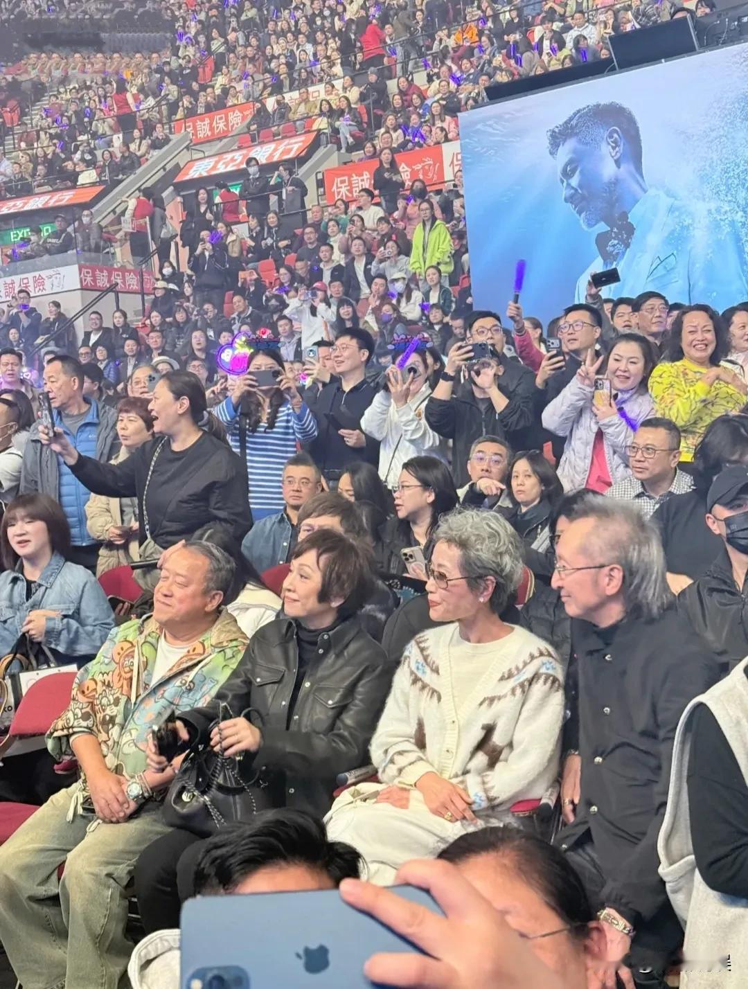 叶童和老公现身张学友演唱会。 穿着一件拼色的针织衫和白色裤子,肤色好白,皮肤也很光亮,涂着口红,手上的宝石戒指很抢眼。 尽管已是满头银发,却看着气色非常不错,也感觉很潮。 老公陈国熹在一旁陪同,穿着一身黑色,头发稀疏,发型好怪。 看他坐着的姿势,身体往老婆的方向倾斜,俩口子感情肯定非常不错。 曾志伟也来看演唱会了,看着好胖啊,穿着一件花衣服配阔腿裤,看起来花里胡哨的。[捂脸]