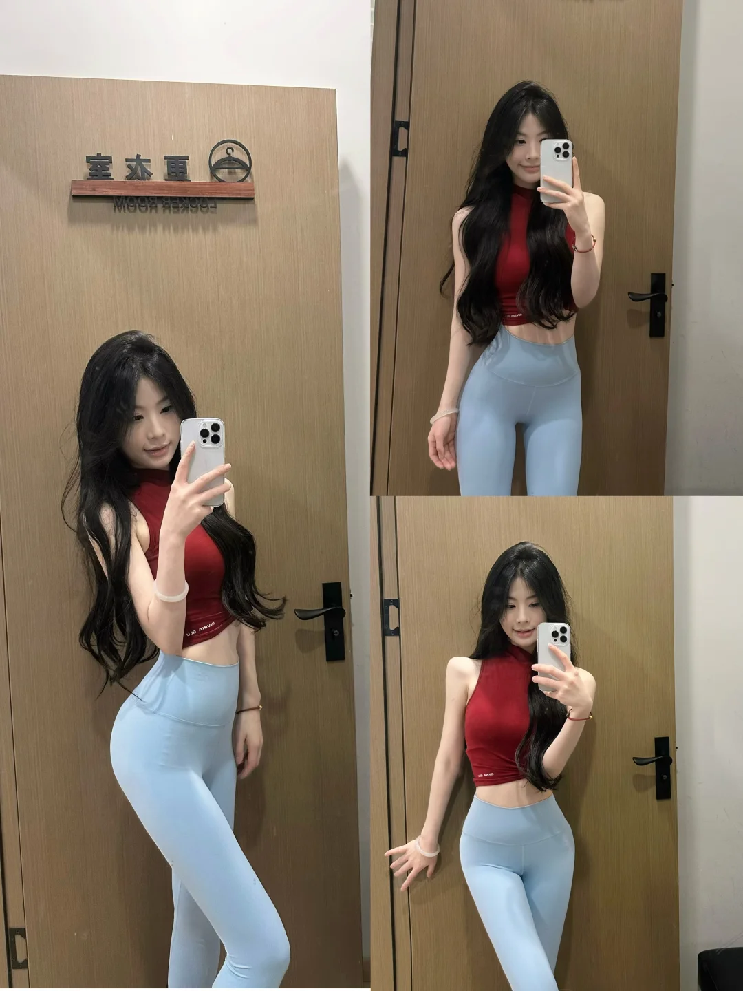 我会根据每节课程来选衣服的穿搭,衣服舒适的同时也要展现出练习的位置,比如练背的时候会选择一件美背的上衣,练臀腿的时候,会选择比较提臀的瑜伽裤,练腹时候会选择稍微短一点的上衣,露出我的腰腹位置~衣服为人服务,只要你开心[红色心形R]