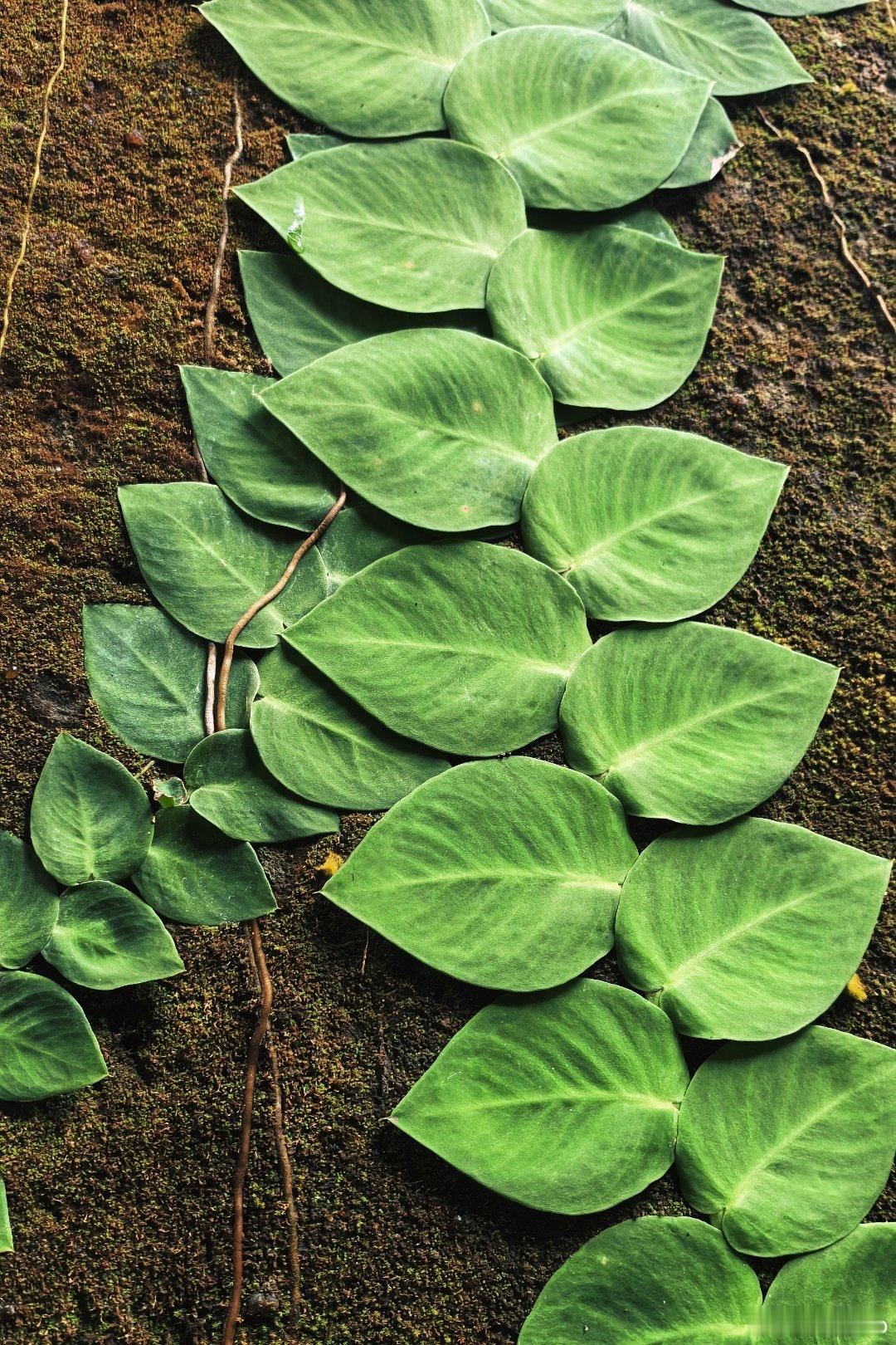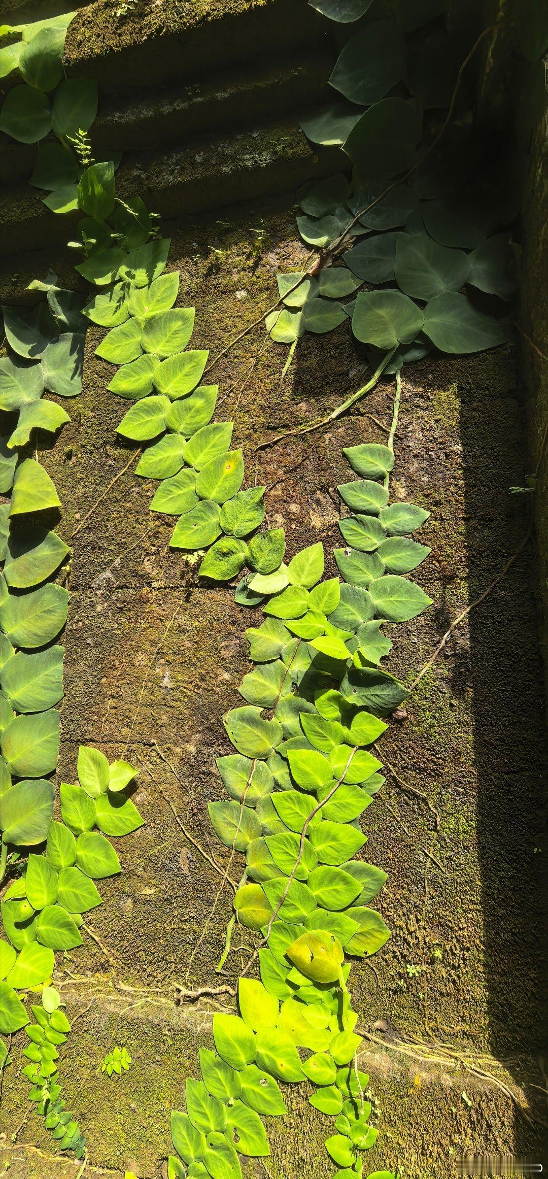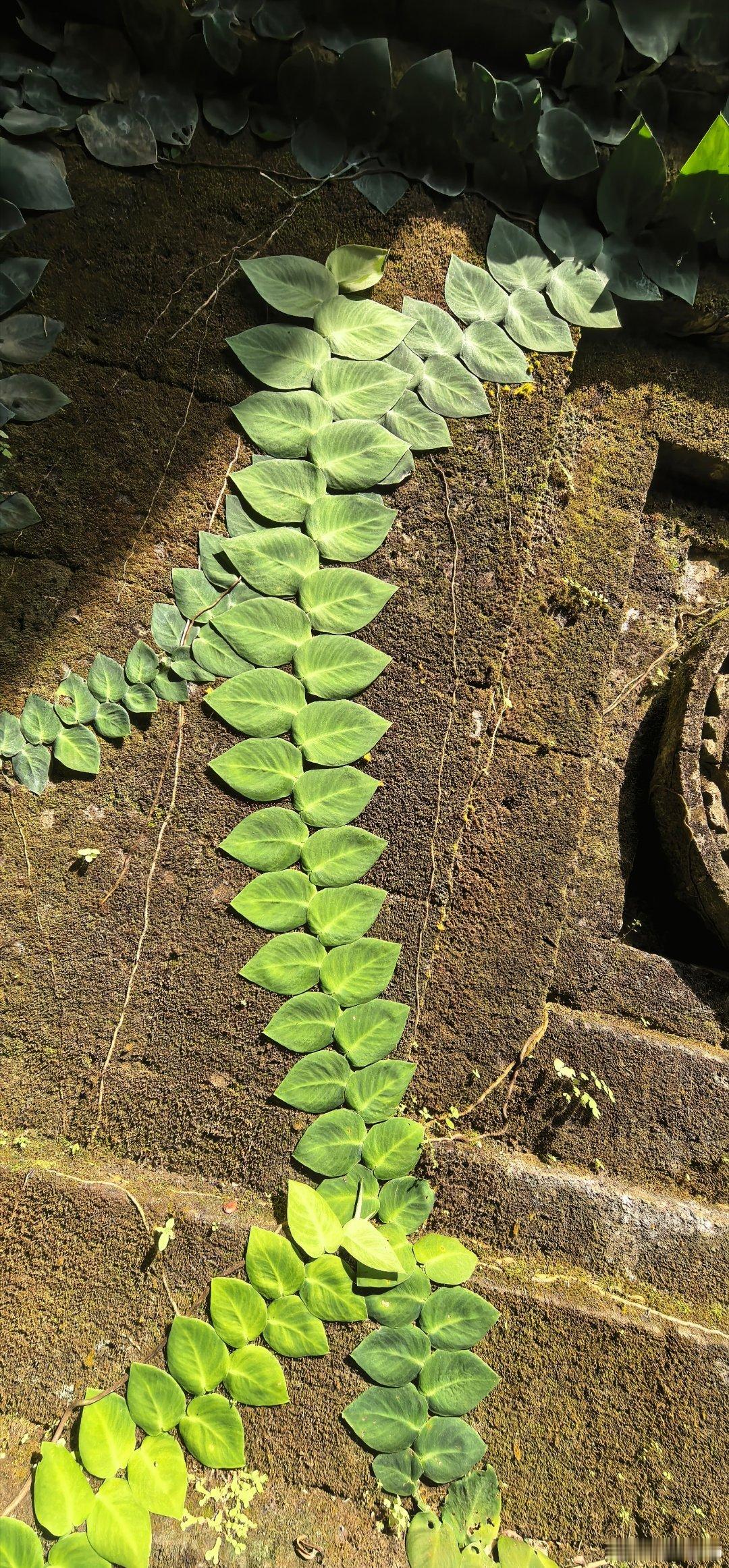 这个藤类的植物,长得实在是太整齐了。嵌在墙里,树干里,左边一片,右边一片,怎么这么好看呢?搜了一下,原来就是一种绿萝。和我认识的绿萝怎么这么不一样?