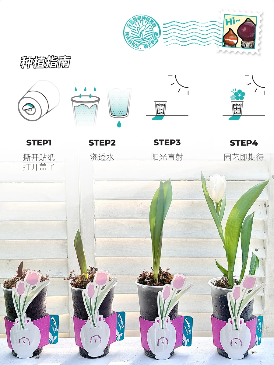 🌷内容要求:球根发芽→开花的生长过程、开花的美图,需要“杯+植物”的整体清晰照片;