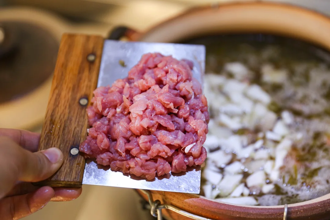 加入食材:当米线煮至七八分熟时,加入切好的鲜肉和蔬菜。继续煮制,直至食材熟透。