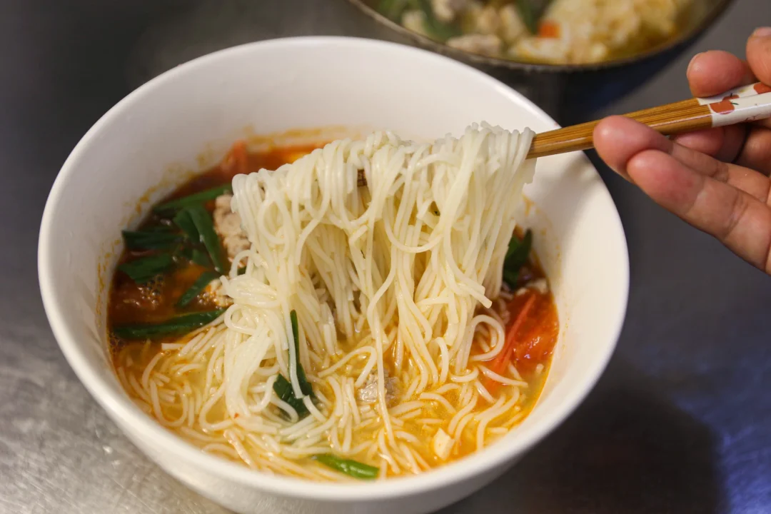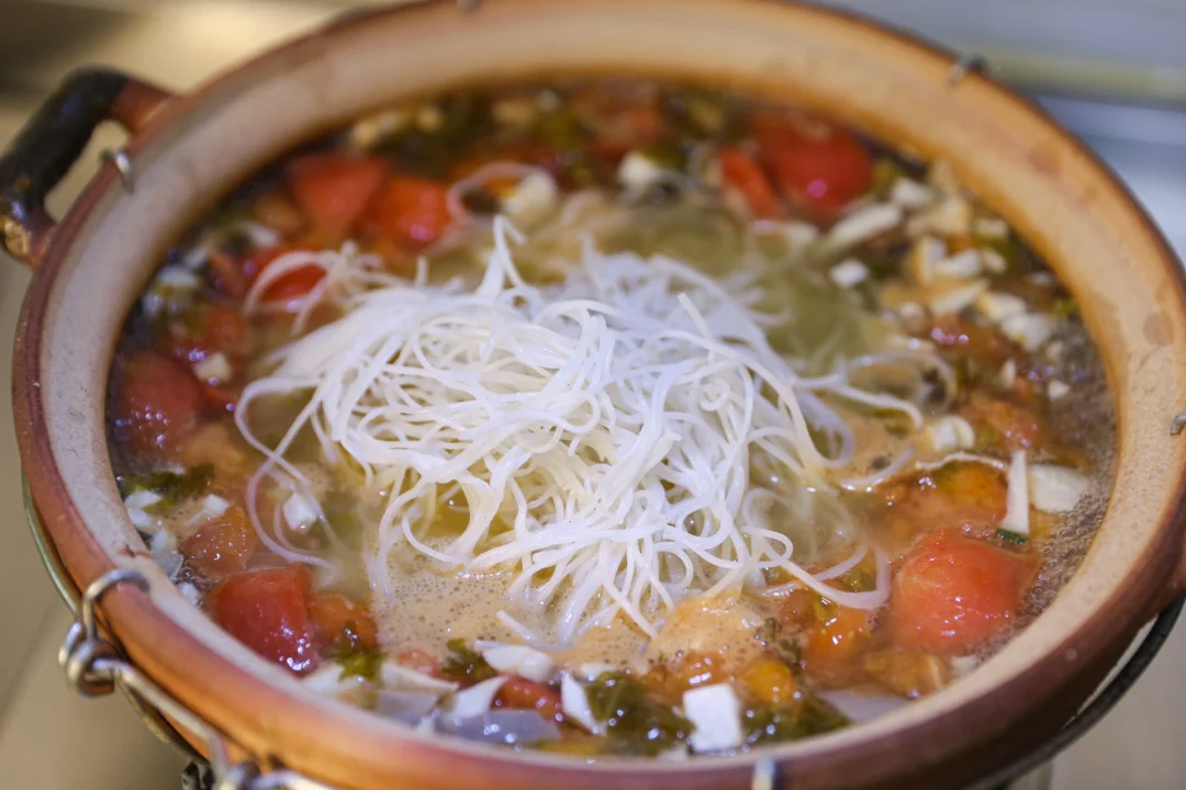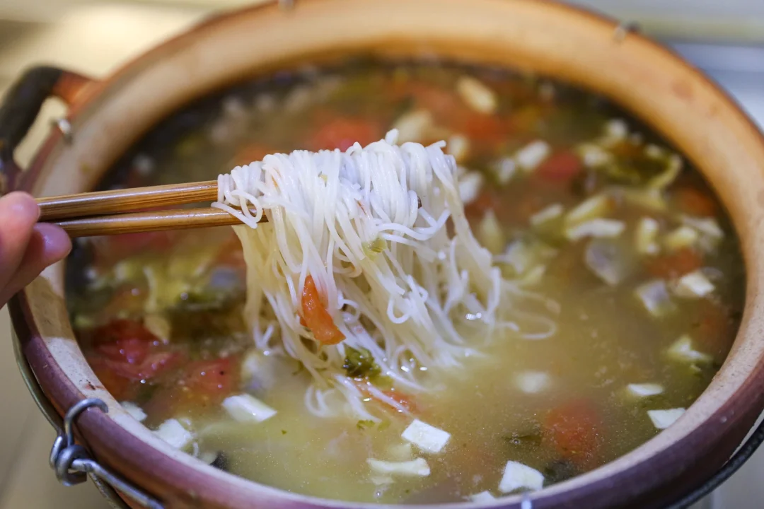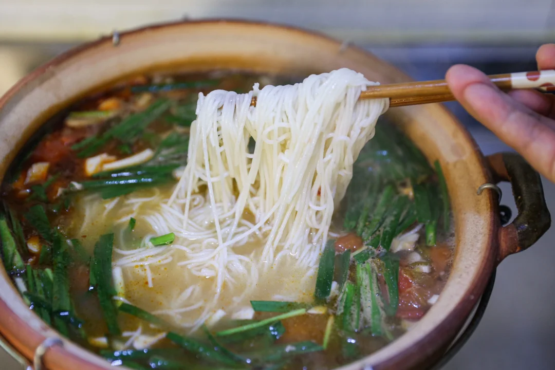 小锅米线最大的特点在于其独特的烹饪方式。每一份小锅米线都是用特制的小锅,在炭火上煮沸而成。这种烹饪方式保证了米线的熟透迅速均匀,同时保持了汤水的清澈和米线的滑嫩。