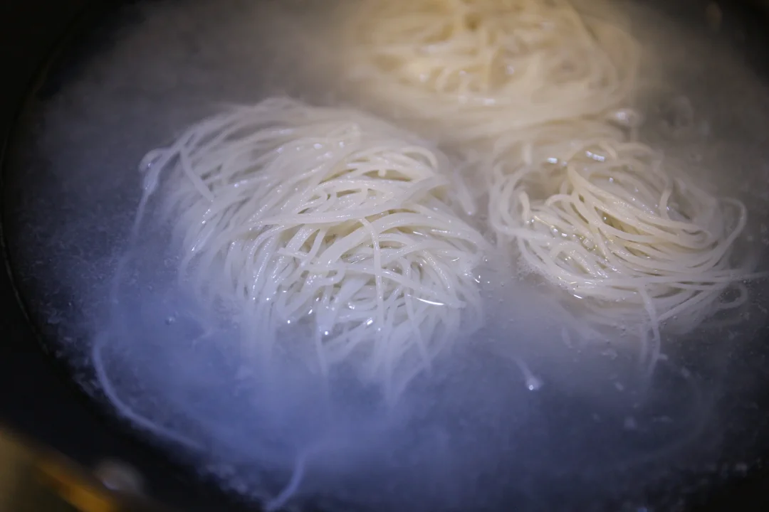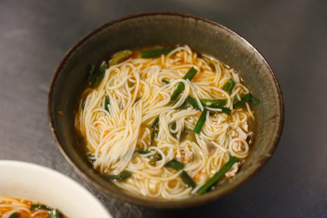 煮制米线:将软化后的米线放入小锅中,加入适量的高汤,用炭火煮沸。在煮制的过程中,需要不断搅拌,防止米线粘连。