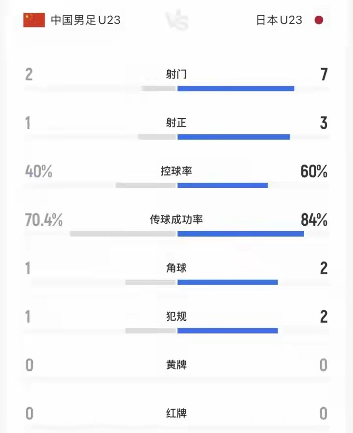 体育U23国足vs日本U23亚洲杯决赛,U23国足vs日本U23。25分钟U23国足0-2落后。日本U23在上半场25分钟7次射门3次射正2个进球,控球率60%;中国U23有2次射门1次射正,控球率40%