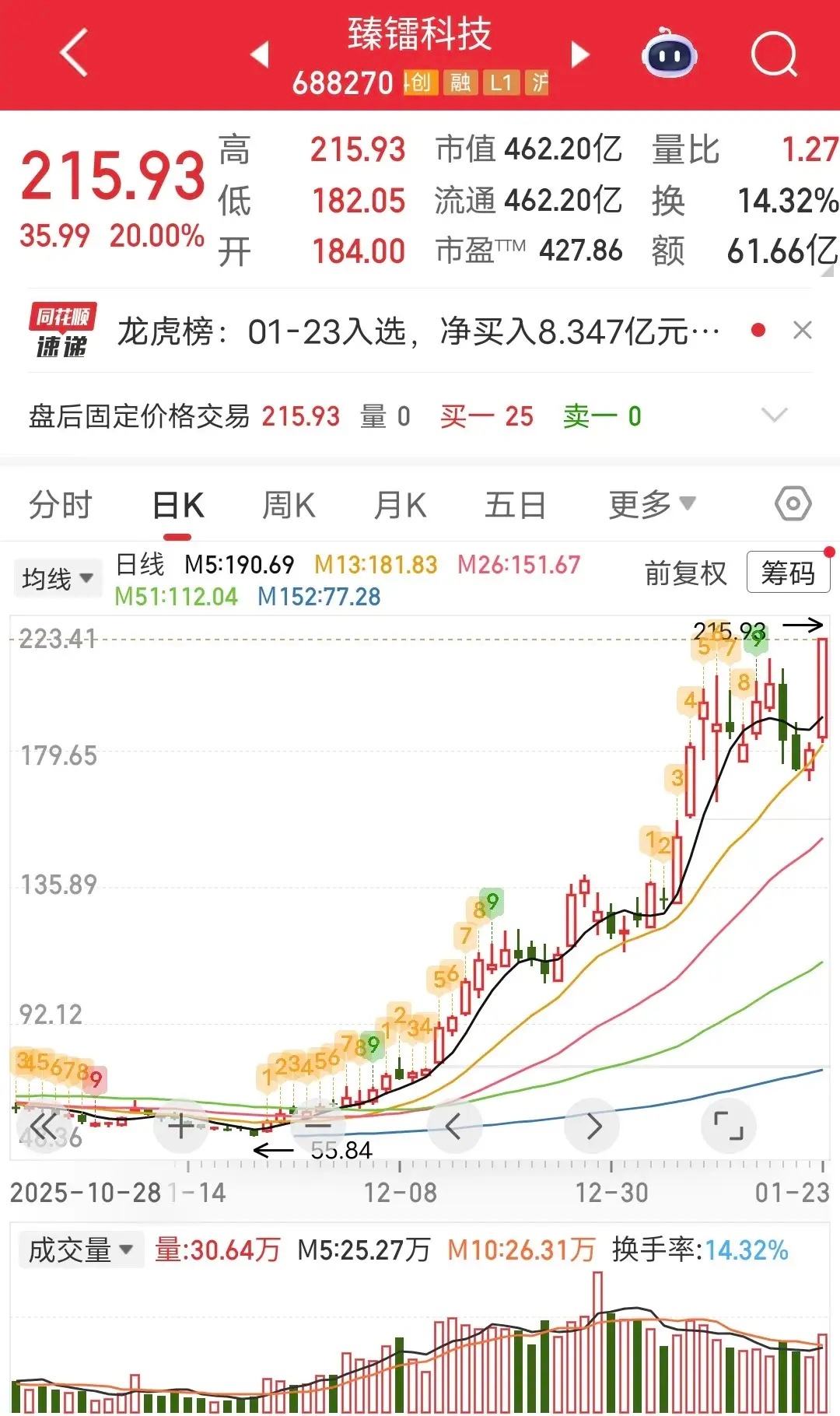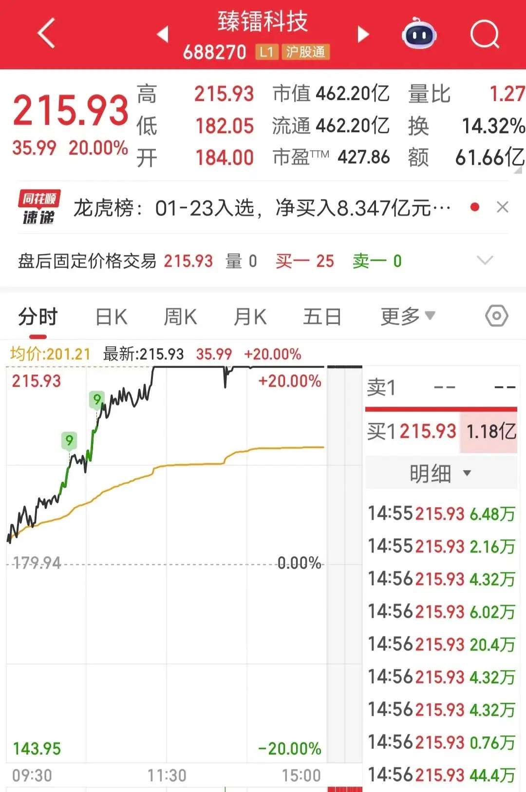 相城大道爆买5亿:周五臻镭科技涨停。盘后龙虎榜显示,相城大道爆买5亿。真是艺高人
