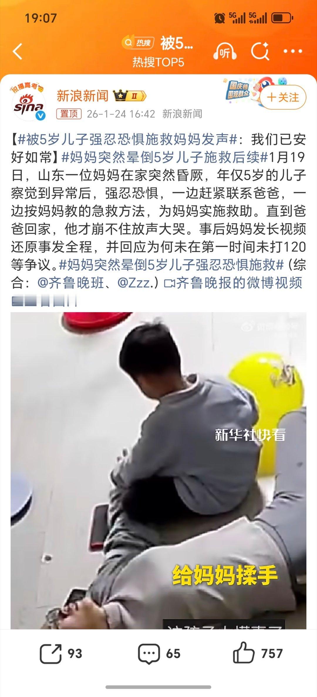 被5岁儿子强忍恐惧施救妈妈发声为小勇士点赞!这个话题词条看了真费劲!点进去才了解事情经过!