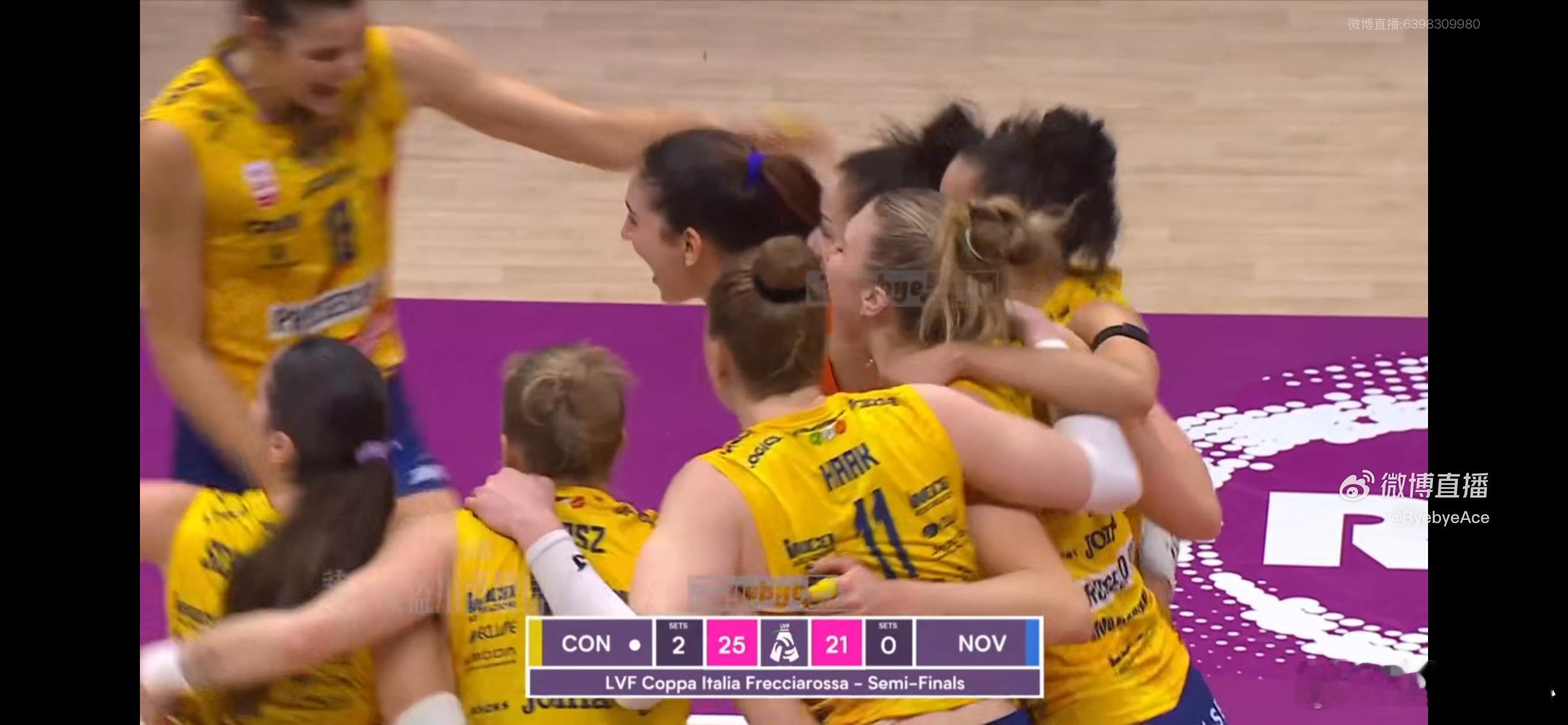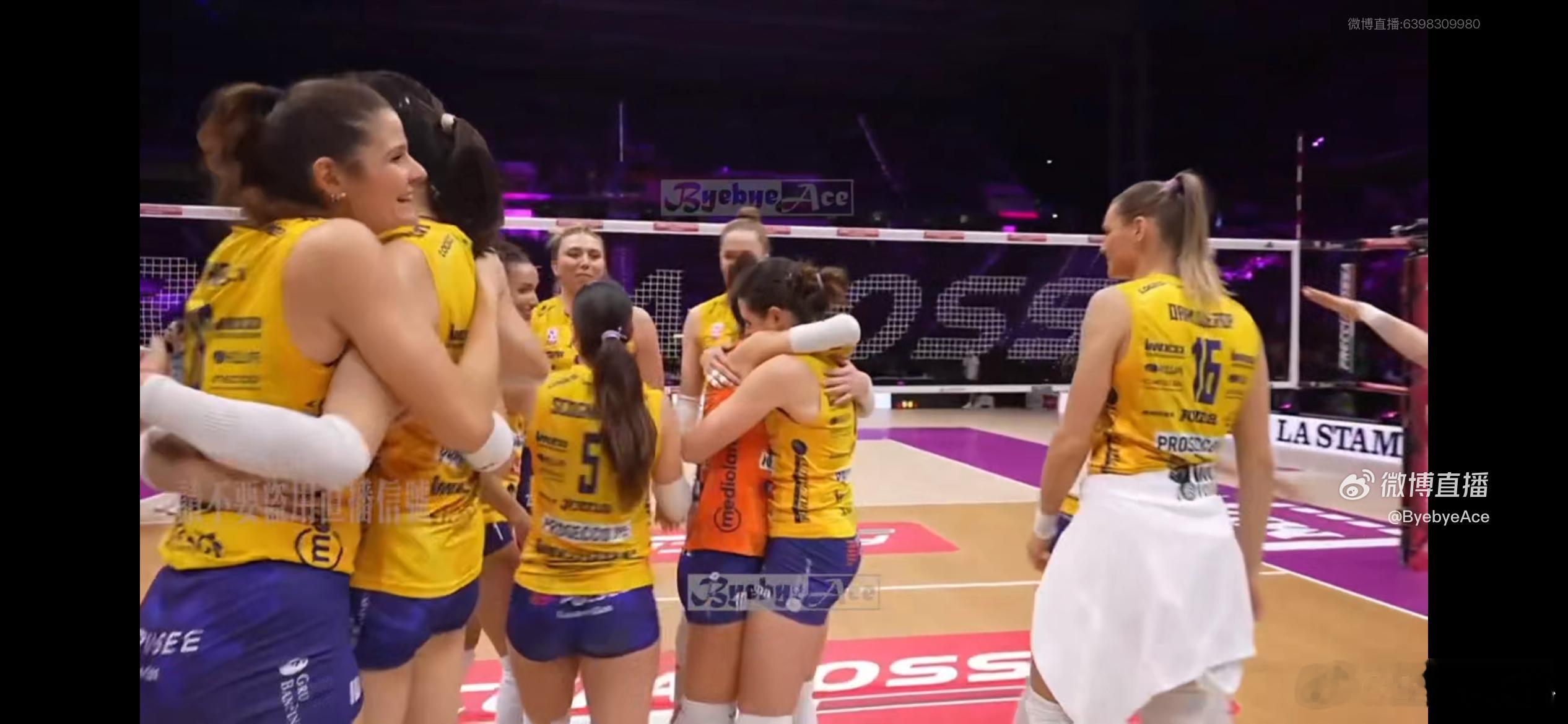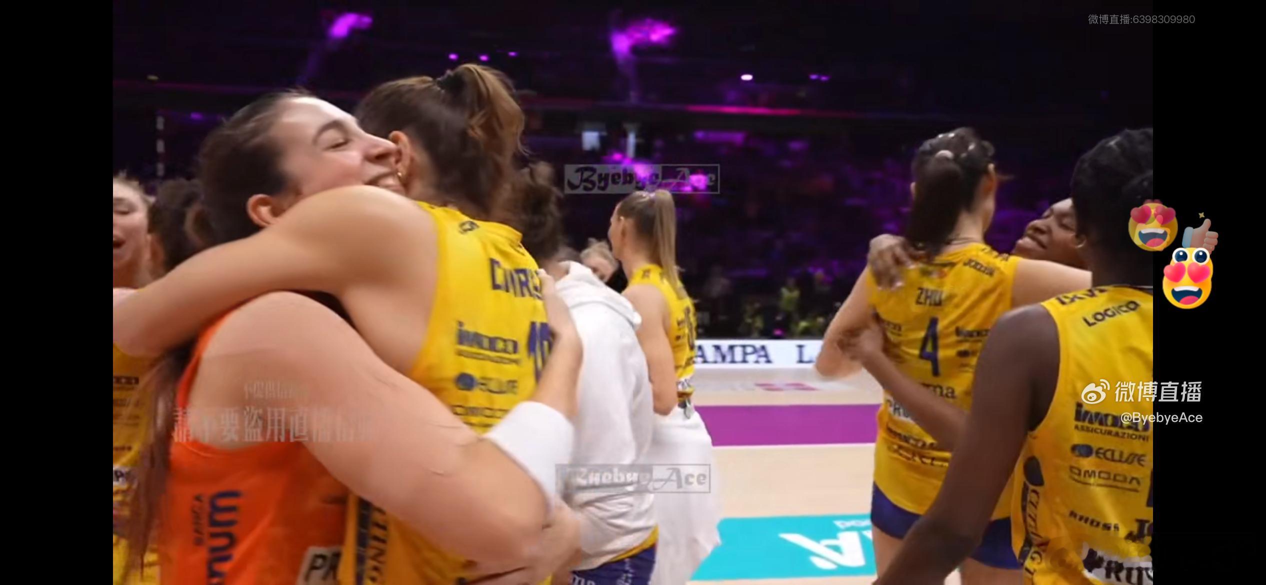 【朱婷和队友赛后拥抱,恭喜科内3-0诺瓦拉】朱婷留洋第七季世界女排新闻