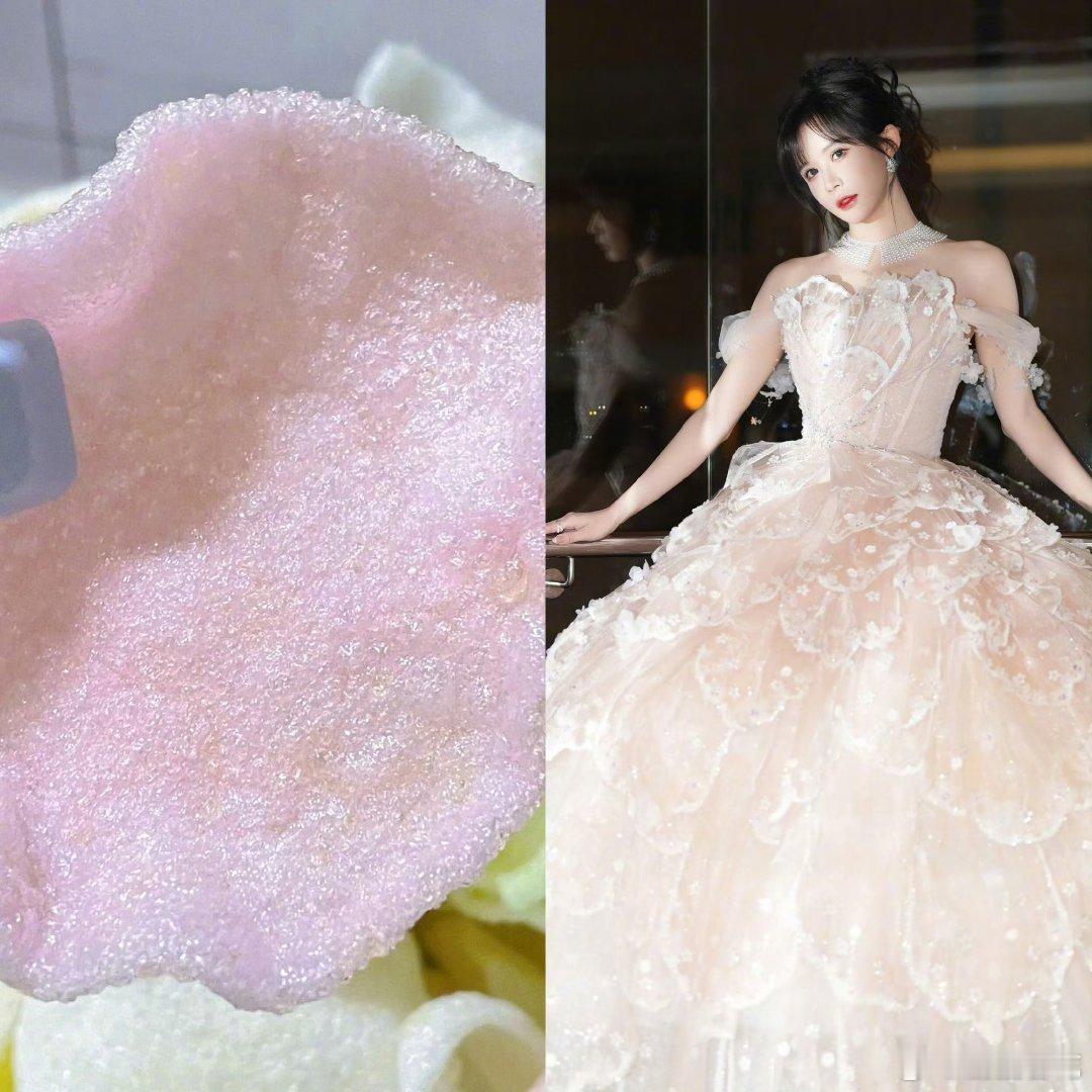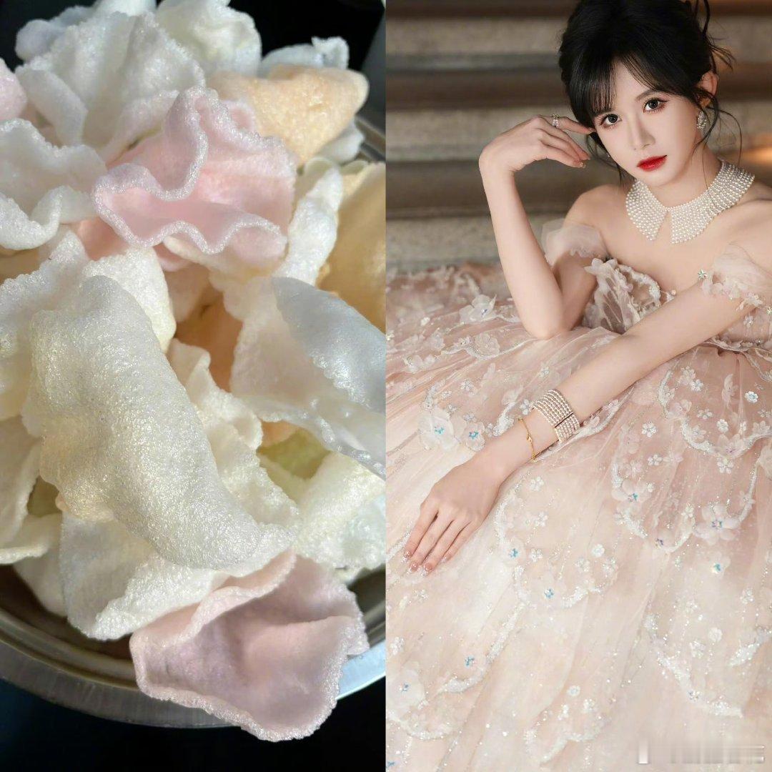 段艺璇像把超大虾片穿身上 梦幻礼裙秒变虾片!段艺璇粉白渐变+亮晶晶褶皱,和虾片纹路一致,把超大虾片穿身上,又仙又有酥脆buff~