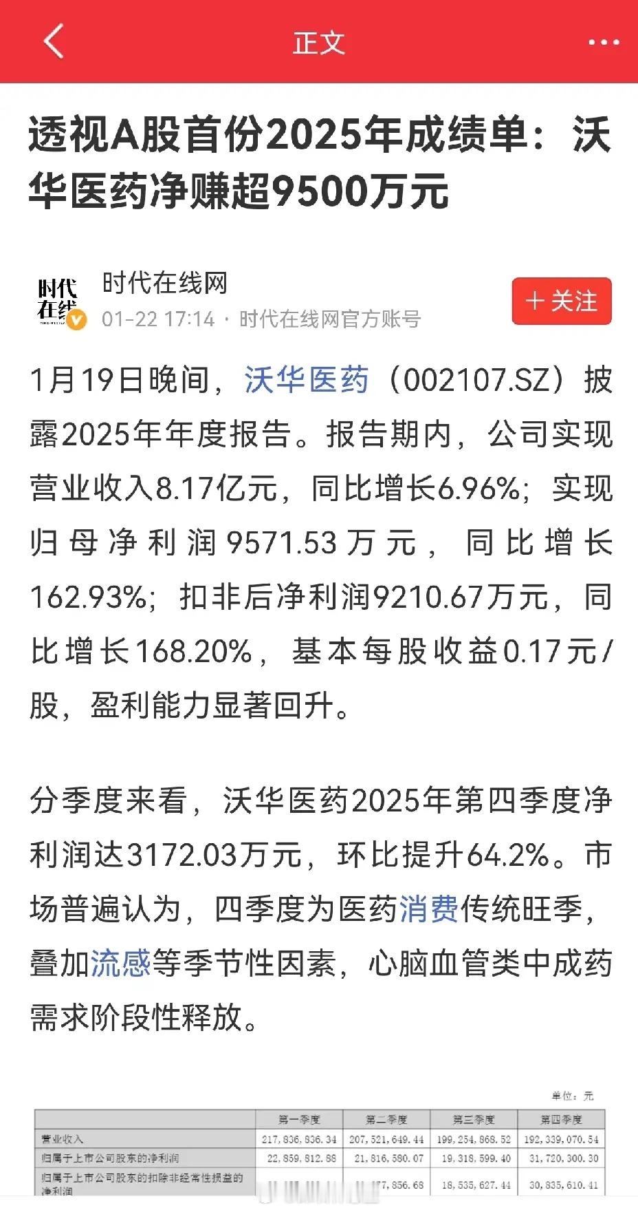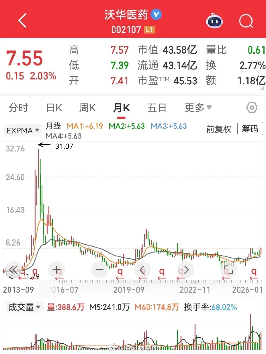首份年报出炉,沃华医药,2025年营收与净利润实现同步增长1.5倍以上。这是一个好消息。来看看股价,近段时间在前期高点之上运行了十来个交易日,生命线缓缓上移形成支撑。月线来看,此股曾经到过31元左右,在底部已经横着十年左右。医药股如果单纯的只是搞医药,业绩好是好,只是没有那些带一点时髦概念的容易被人看中,比如什么AI医疗什么脑机接口的。