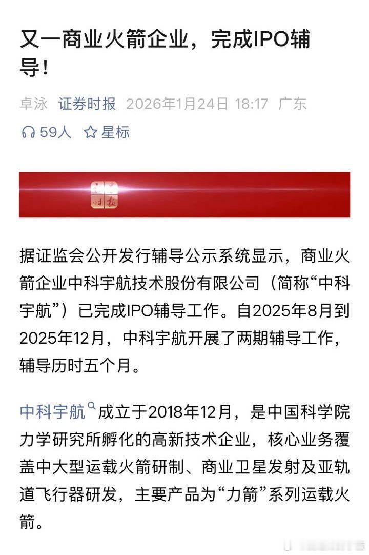 又一商业火箭企业完成IPO辅导。