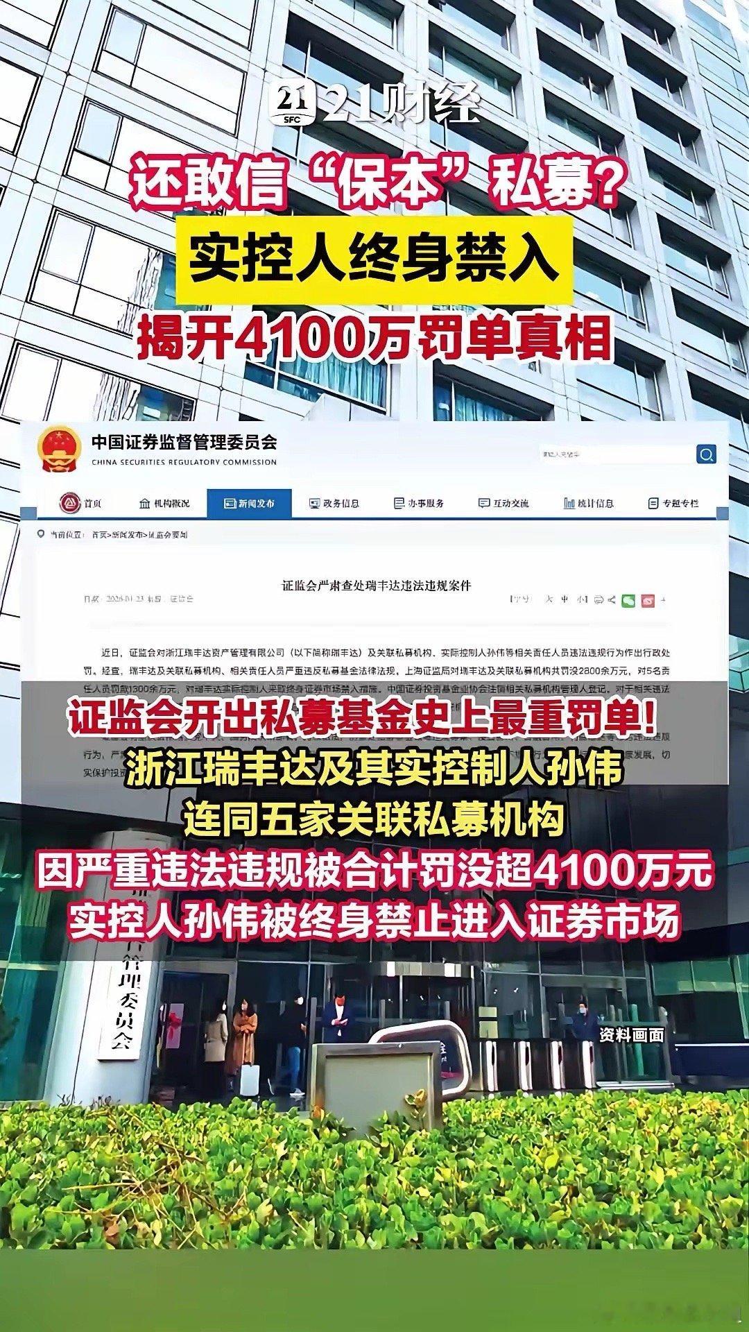 私募史上最重罚单罚没超4100万还敢信“保本”私募?实控人终身禁入,揭开4100万罚单真相证监会开出私募基金史上最重罚单!浙江瑞丰达及其实控制人孙伟,连同五家关联私募机构,因严重违法违规被合计罚没超4100万元。实控人孙伟被终身禁止进入证券市场。