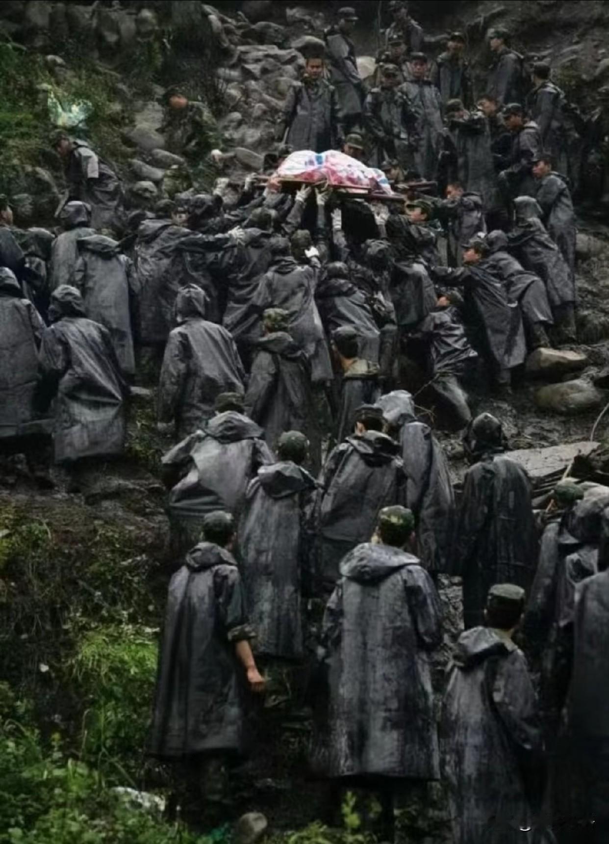 18年过去了, 再看这张照片依然震撼人心! 2008年那个初夏, 山河破碎,暴雨倾盆。 都江堰到映秀的山路上, 战士们穿着湿透的迷彩服, 在泥泞中筑起人墙。 有人半跪悬崖,手指抠进石缝,硬生生撑出“人肉梯架”;有人顶着余震,用臂膀托举着幸存的孩子,雨水混着汗水往下淌。磨破的指节、嵌着石子的绑腿,还有护目镜后坚毅的眼神,比雷鸣更有力量。 18年过去,照片早已泛黄,但那些逆行的身影从未远去。他们不是超人,却在灾难面前化身脊梁,用血肉之躯架起生命通道。 这才是我们该追的星啊!没有流量光环,却用坚守与奉献,刻下民族最难忘的记忆。向这些无名英雄,永远致敬!
