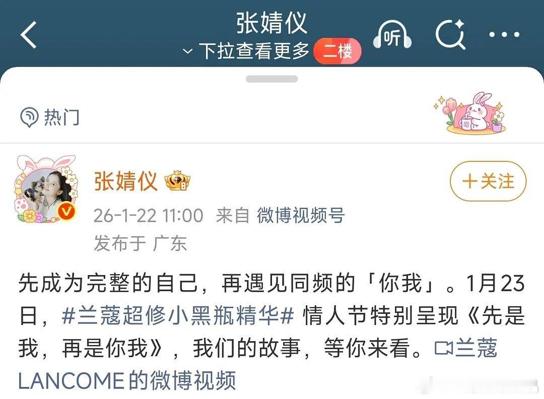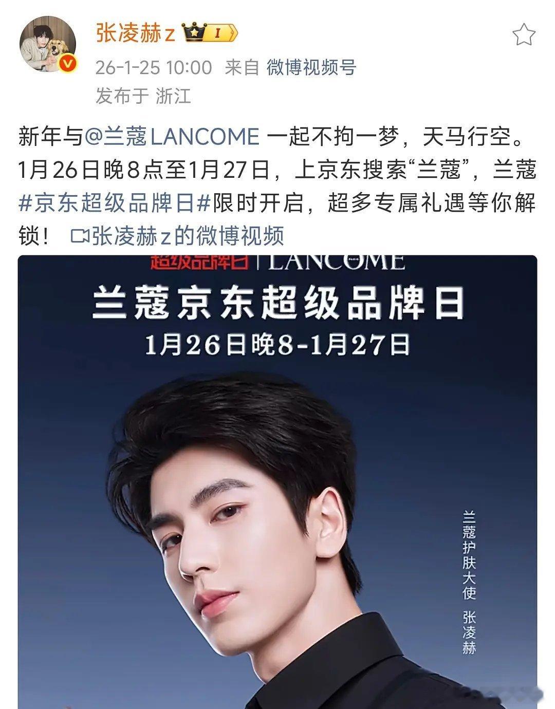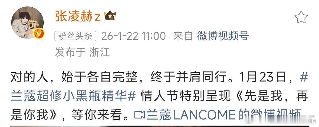刚刚,张凌赫为赔罪兰蔻又发了一条宣传博。而张婧怡这边并没有发,最新的人就是1月22号和张凌赫共同发的这个宣传。