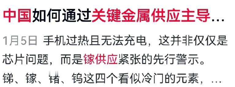 如何认知中国攥紧四张"金属王牌"? 其一,中国在钨、镓、锗、锑等关键小金属领域掌握着全球供应主导权,其中镓的供应占比高达98%。这些金属虽“小”,却是芯片、雷达、红外设备、军工制造等高端产业不可或缺的核心材料。 其二,从开采到加工,中国已形成全产业链优势。西方若想另寻替代,不仅面临成本翻倍、建设周期漫长等挑战,回收利用也难以满足规模需求。 其三,近年来,西方不断推动技术封锁与产业链脱钩。此时中国优化关键金属出口管理,既是维护自身产业安全的必要之举,也是对单边霸凌的理性回应。这扇门不是关闭合作,而是守护公平——在全球化时代,产业链相互依存,卡别人的脖子,终将反噬自身。 其四,我们不主动挑事,但具备反制能力。科技竞争的本质是共赢与合作,而非零和博弈。 对此你怎么看?