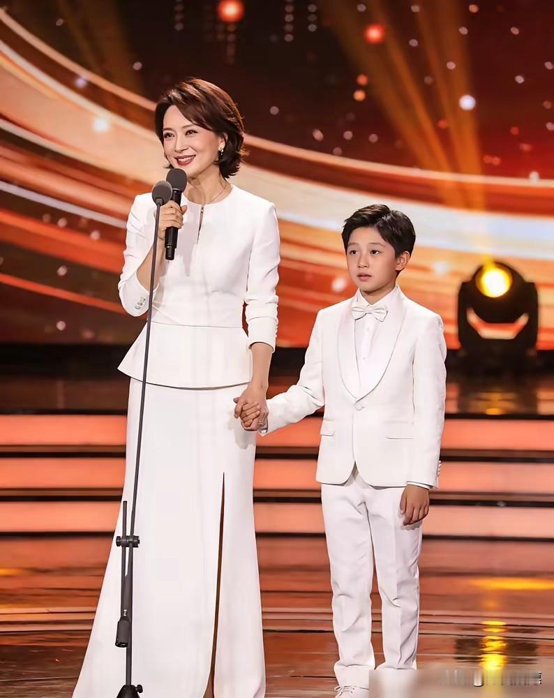 谁能想到, 有一天看董卿主持, 得去小学礼堂“抢票”呢? 最近,51岁的她一身白裙,陪11岁儿子在校庆上朗诵。 没有亿万观众瞩目,没有央视演播厅的华光,她声音依旧磁性,全程脱稿。 儿子紧张得小手不知往哪放,她却温柔包容。 网友感慨:走下最大的舞台,站上最重要的舞台。 从“央视一姐”到“孩子的妈”,这份“跨界”主持,你给打几分?