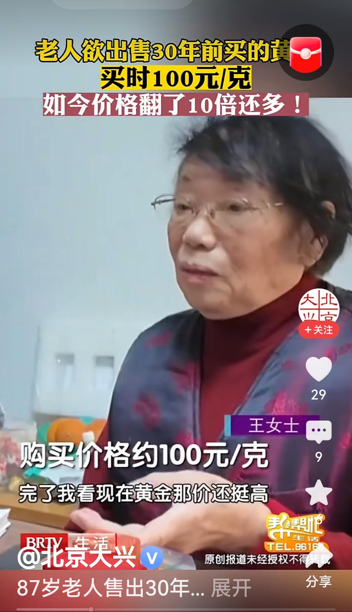 老人30多年前买的金首饰是每克100元,现在的回收价格每克1020元,增长了十倍好像很多。但实际上上世纪90年代初人们都非常穷,工资也非常低,当时的工资很多人几十块钱甚至上百元,现在的工资都是几万元,如此算下来是贬值还是增值了?所以黄金是一个保值产品,不要指望着能挣大钱。