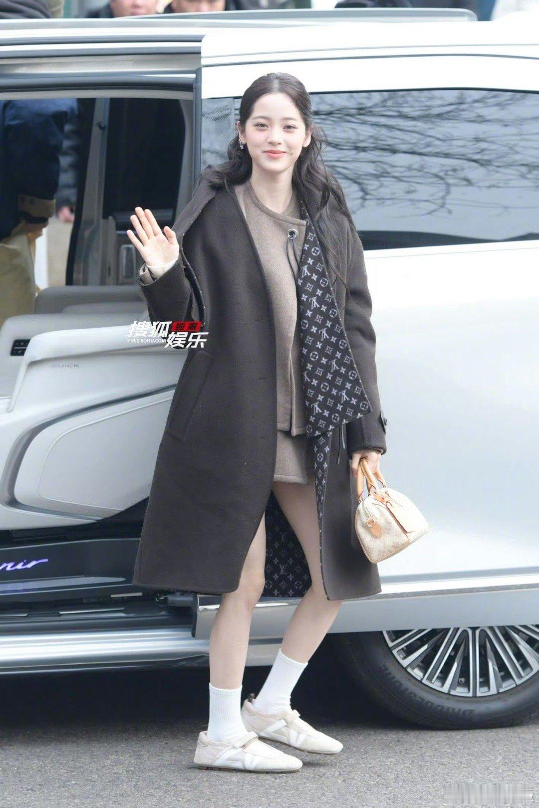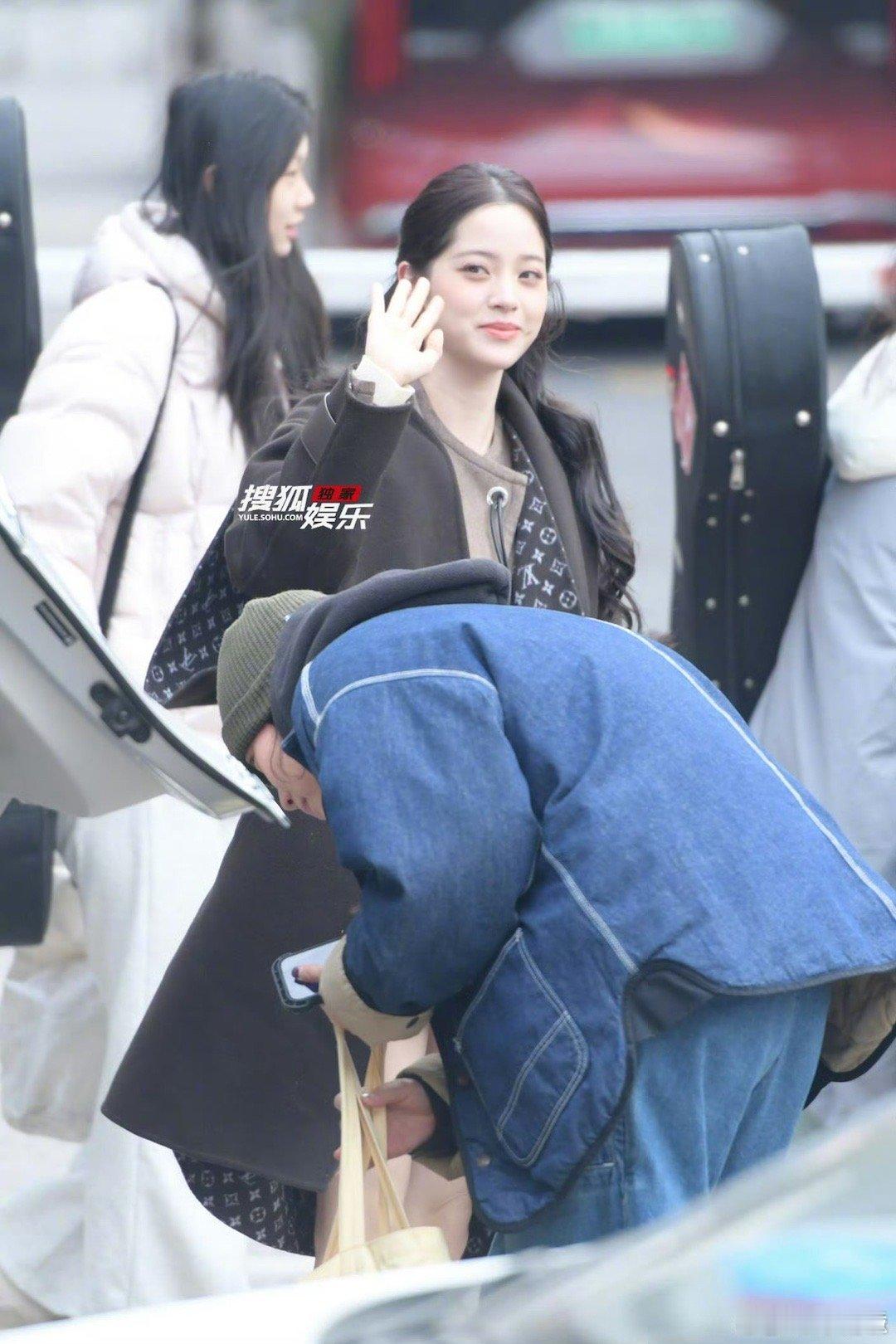 欧阳娜娜马年春晚第二次联排 娜娜的联排状态好到发光!公主头搭配卡其大衣,甜美与温柔兼具,临走挥手的样子超有爱。