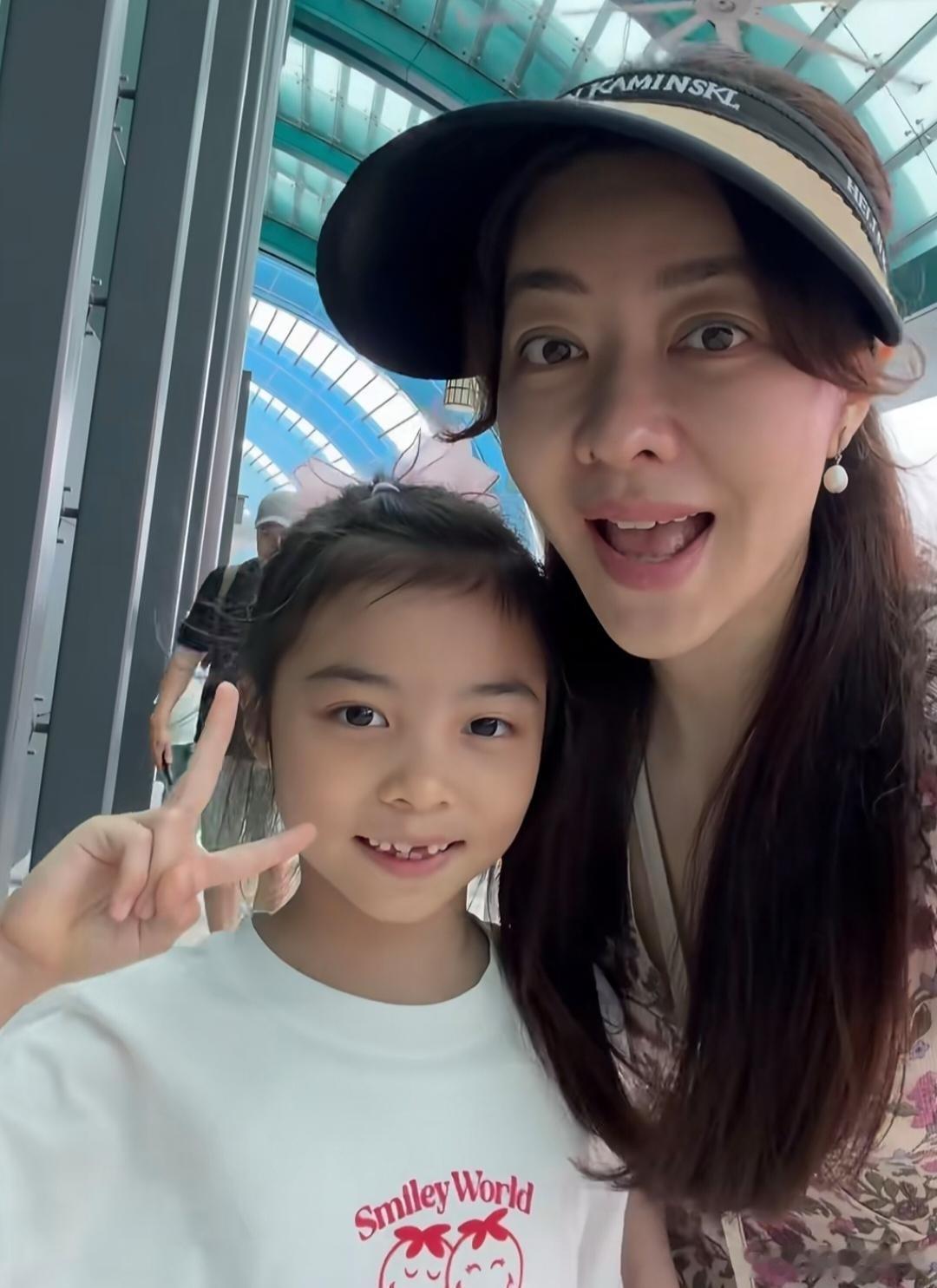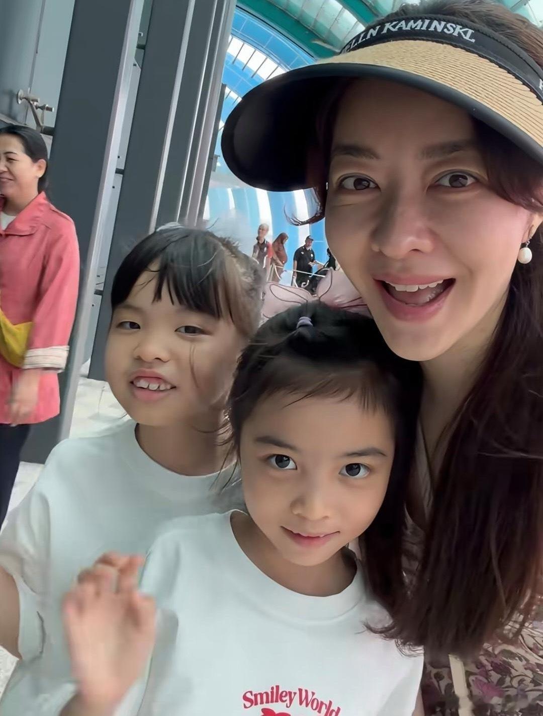 45岁熊黛林和老公郭可颂带一对双胞胎女儿到新加坡旅游,两个女儿像极了爸爸,颜值很一般,黑眼圈有点重,看起来有点憔悴。