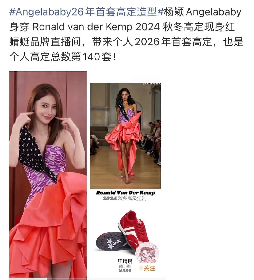 Angelababy26年首套高定造型 Angelababy直播身穿高定上直播卖红蜻蜓鞋子,被品牌方打假未授权。。。。。好尴尬,昨天yxh还在吹她时尚资源好...
