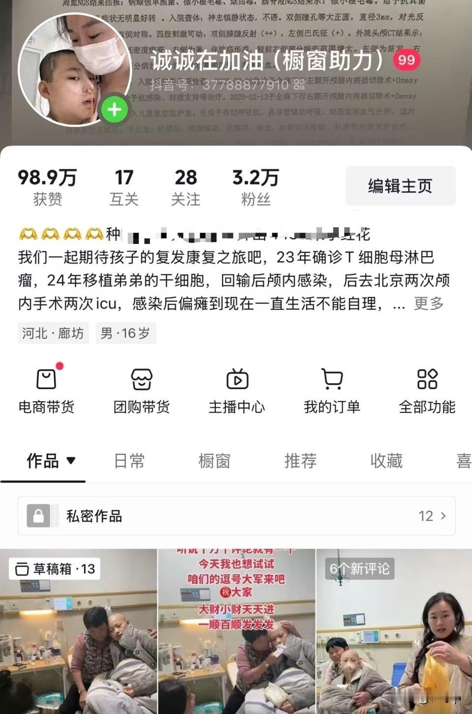跳的难看也要跳 一位妈妈在16岁儿子的病床前起舞 不为别的,只为了给儿子搏一份生的希望,这位37岁的女子说,她打心底也不愿意以这样的方式出现在大家面前 但孩子的病实在是花销太大了 尽管医保和低保都为他家提供了救济 但面对以后的治疗显的杯水车薪 如果是真的没有办法了,谁愿意把孩子这般的状态展示给外人,这位女子在和大风新闻记者交谈时多次哽咽 记者问她“假如网上有人污蔑或者诋毁你,你怎么办?”她声音很轻的说“只要能救我的孩子!” 所有的母亲都是这么伟大,面对自己生病的孩子,都希望把孩子遭受的痛苦转移到自己身上,哪怕付出生命的代价都不含糊,真心希望所有各地的省媒,把关注的目光稍微往病患群体看一看 那怕给他们带来一丝微光,也是给了他们生的希望。