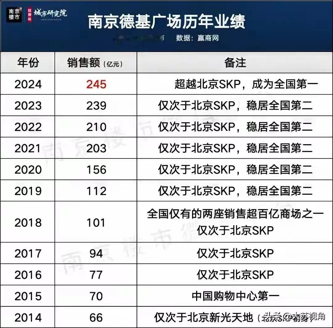 南京德基广场又双叒一次霸榜中国购物中心No1,2025年南京德基以262亿营业额超过北京SKP,再次荣登中国购物中心第一名次。 这两年南京德基都超过了北京SKP,说明南京商业的地位还是非非非常棒的,也是长三角购物中心的头部一哥,说明南京江苏及江苏周边的人们的消费力量是可圈可点的!有的人说工资6千及以下都不好意思进德基广场,但是逛逛还是可以的,以上仅供参考,属个人意见!