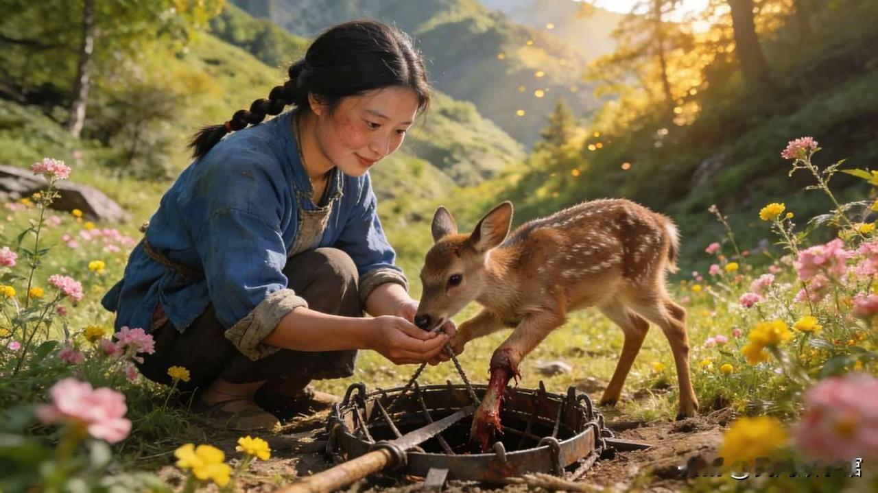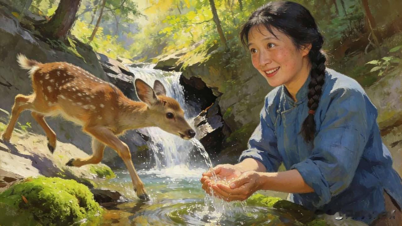 山村绣姑阿绣,每日都会去山中采花绣样。一日采花时,见一只小鹿被猎人的陷阱所伤,哀嚎不止,阿绣心生怜悯,小心翼翼将小鹿救出,为其包扎伤口,还带回家里照料。小鹿痊愈后,对着阿绣磕了三个头,便跑进了深山。那年村里大旱,田地干裂,庄稼眼看就要枯死,村民们四处找水却毫无收获。阿绣心急如焚,这时那只小鹿突然出现,引着阿绣往深山走,在一处山谷中,竟有一股清泉汩汩流出。村民们跟着引泉入村,浇灌良田,那年庄稼大丰收,大家都说是小鹿报恩,护了全村人的生计。民间故事 小鹿报恩