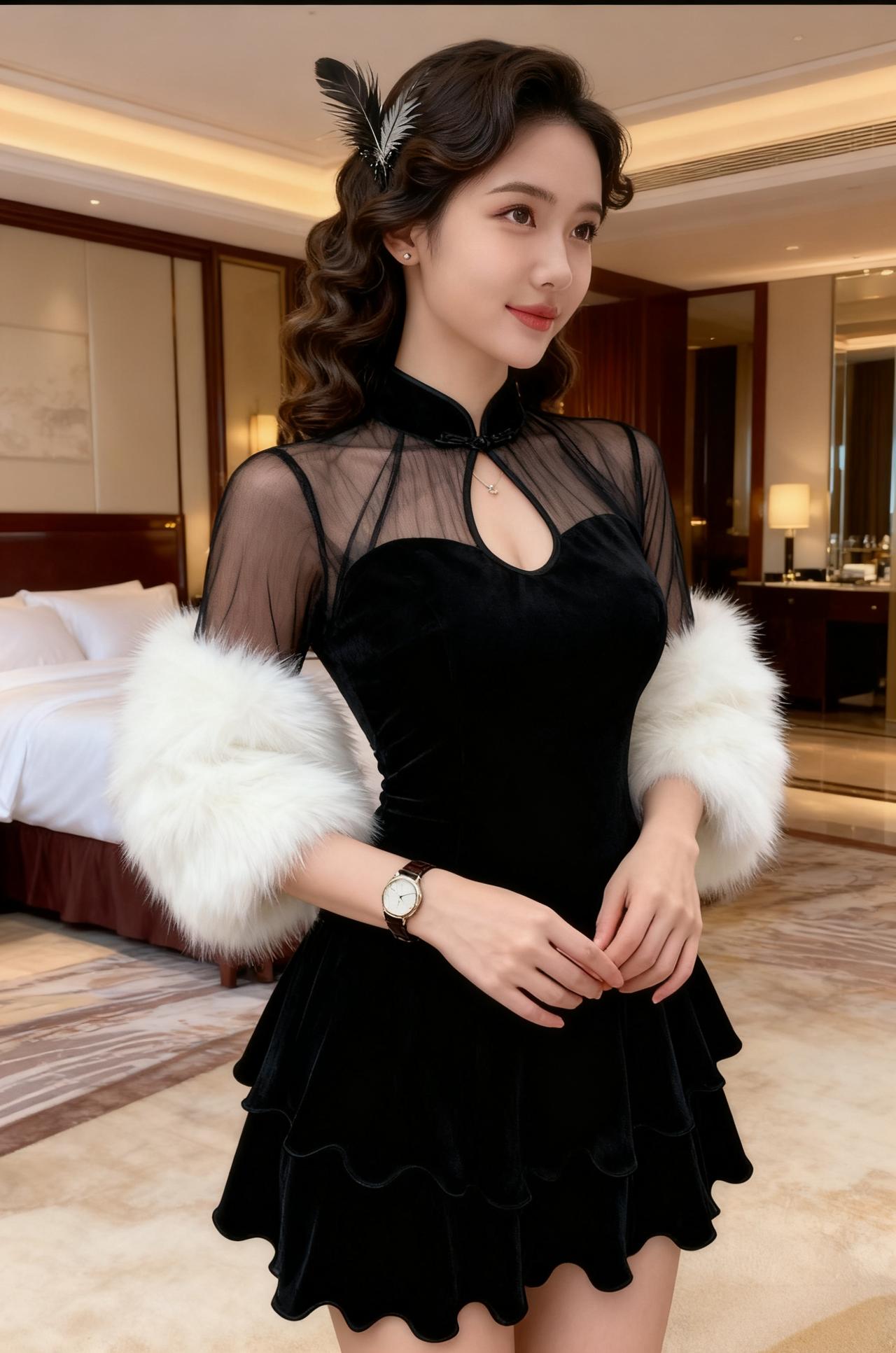 黑色挂脖亮片短裙,自带摇曳生姿的氛围感。