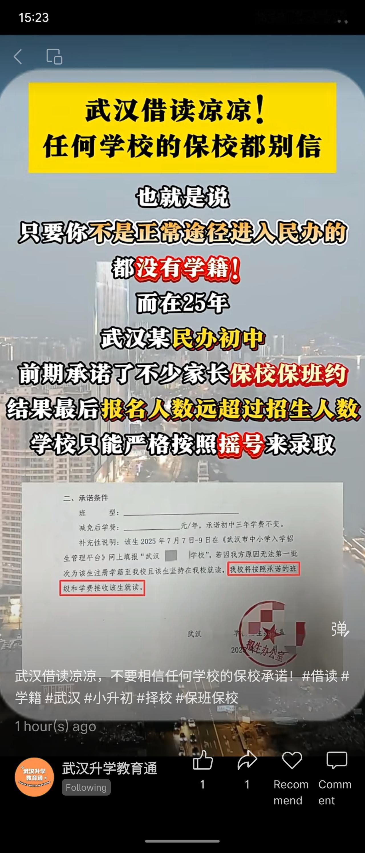 某武汉民办初中曾向家长承诺“保校保班”,但因实际报名人数远超计划,最终只能严格按摇号结果录取。这导致部分被承诺的学生无法获得该校学籍。学校提出的“借读”方案属于违规的“人籍分离”操作,是教育部门明令严禁的。此事揭示了民办招生中“保校承诺”的潜在风险,提醒家长需以官方录取和学籍注册为准。