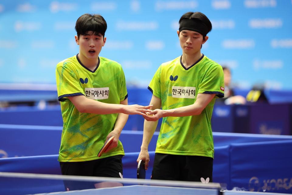 申裕斌/林钟勋晋级韩国乒乓球锦标赛决赛决赛的对手是卫冕冠军朱芊曦/赵胜敏