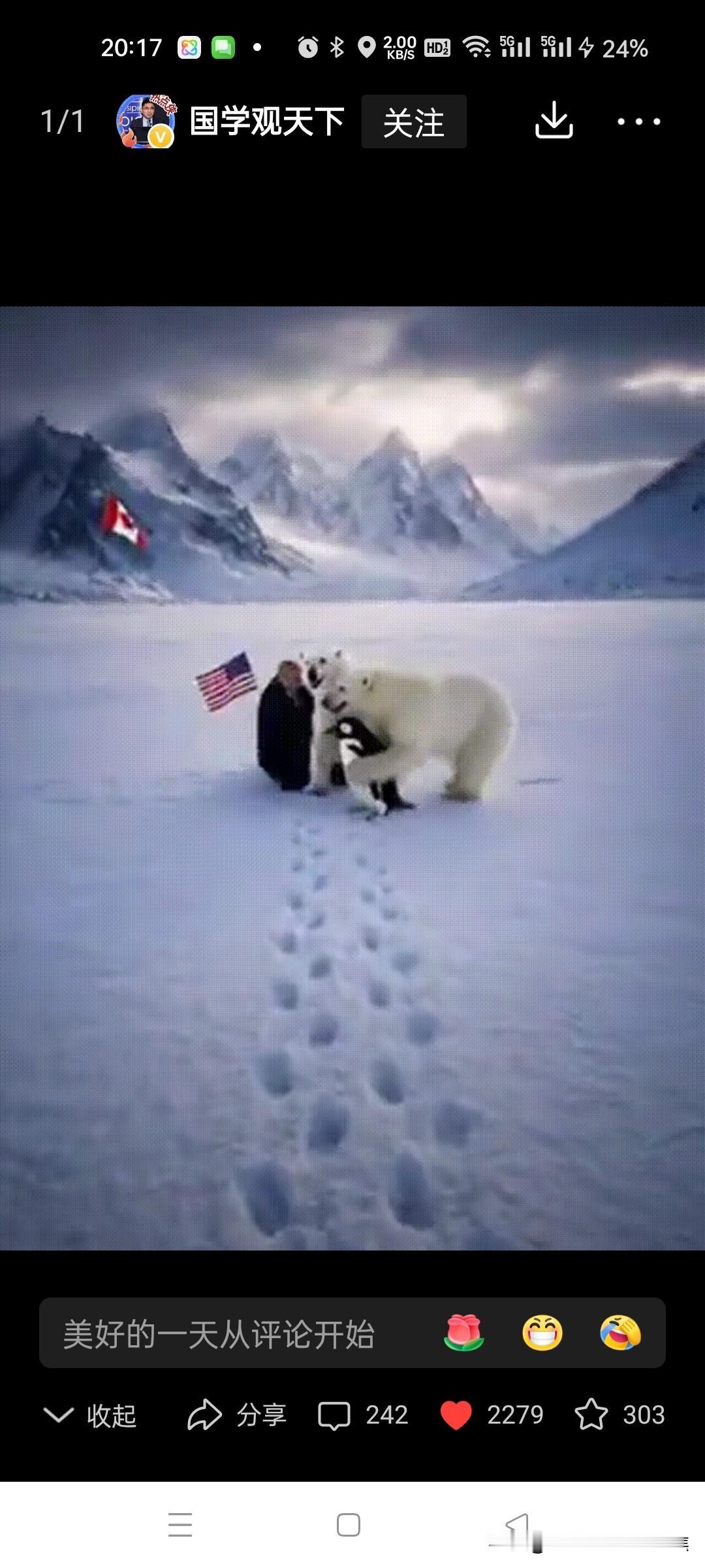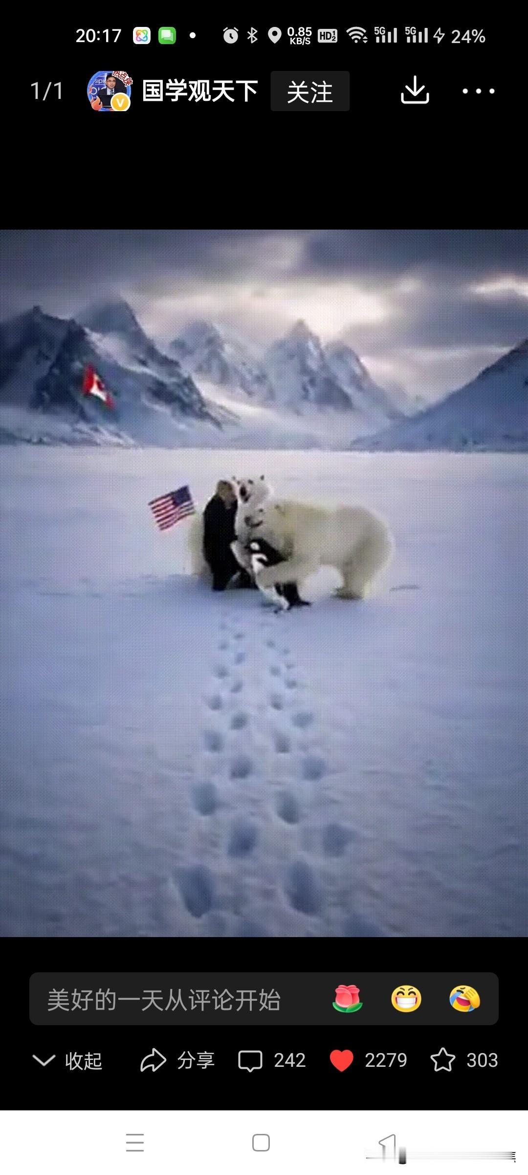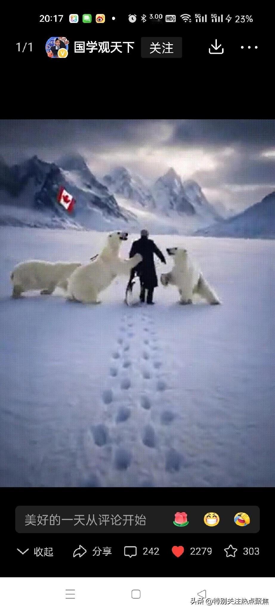 特朗普被四只北极熊扑倒在雪地。凶多吉少。想象特朗普牵引南极企鹅到格陵兰,结果被北极熊扑倒,这画面简直太有戏剧性了。先不说这现实中根本不可能发生,就这场景都能拍成一部搞笑大片了。这脑洞开得够大啊! 说北极熊对企鹅友好,还联想到《我的祖国》那经典歌词,这波创意属实厉害。不过北极熊要是真有这“智慧”,那可真是成精了。而特朗普嘛,在这想象剧情里那是凶多吉少咯。也不知道他要是真遇到这场面,会是吓得目瞪口呆,还是能想出啥办法脱身呢,哈哈。 欧洲对特朗普 特朗普碰壁 极地北极熊 冰岛北极熊 特朗普登机 东北北极熊 特朗普访英国