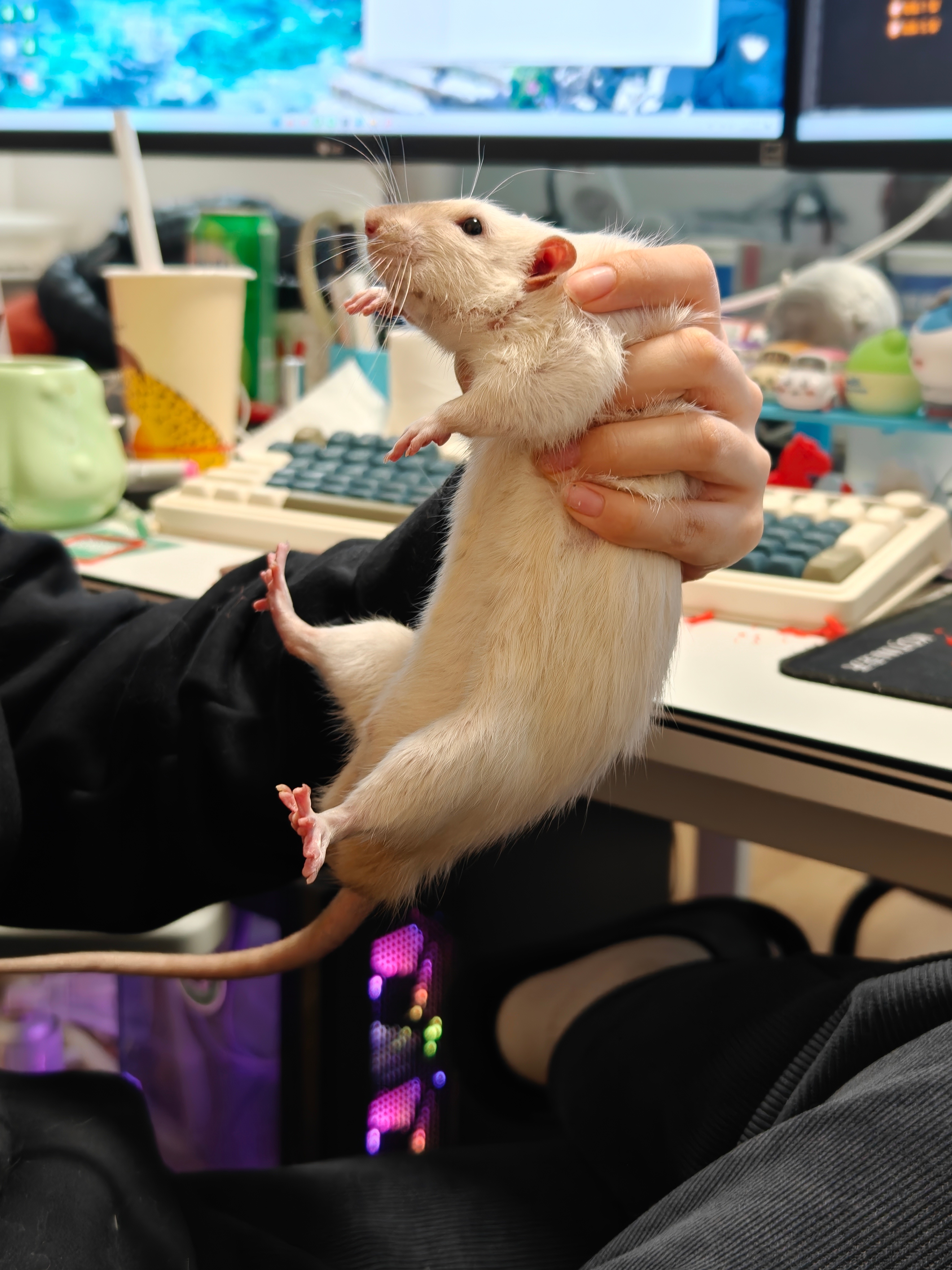 养猫的见多了,养狗的也见多了,养花枝鼠的,我是第一次亲眼见到,毕竟网上倒是有不少啦~另外,我这同事养了三只,且,这是她养的体型里面最小的一只,原因是怕它们寂寞,且,这鼠的名字也叫“皮皮”,我擦,这也能重名?我也是真没招了论体型,跟我们广东的老鼠,差不多大了,对的,咱们广东的老鼠,正常就这个大概体型;论手感,你别说,软软的,热热的,还真挺好 rua 的,甚至,在摸它胸口的时,你可以很轻松地感觉到它的心脏在跳动~既没攻击性,也不用遛,成本也低,综合来看,确实还挺适合小女生。