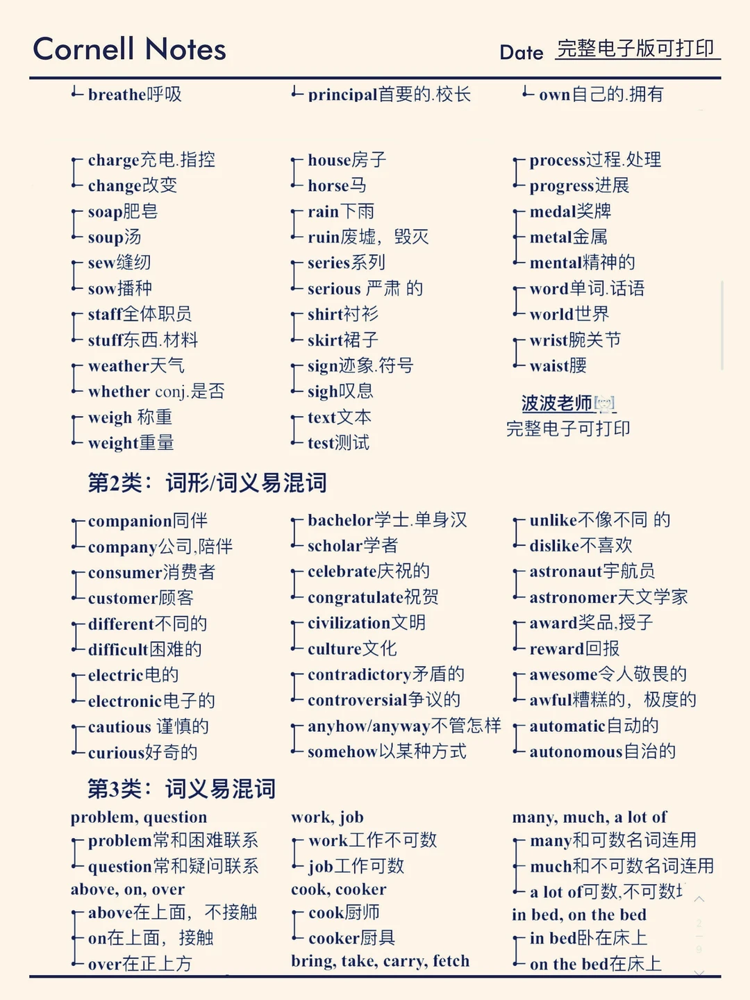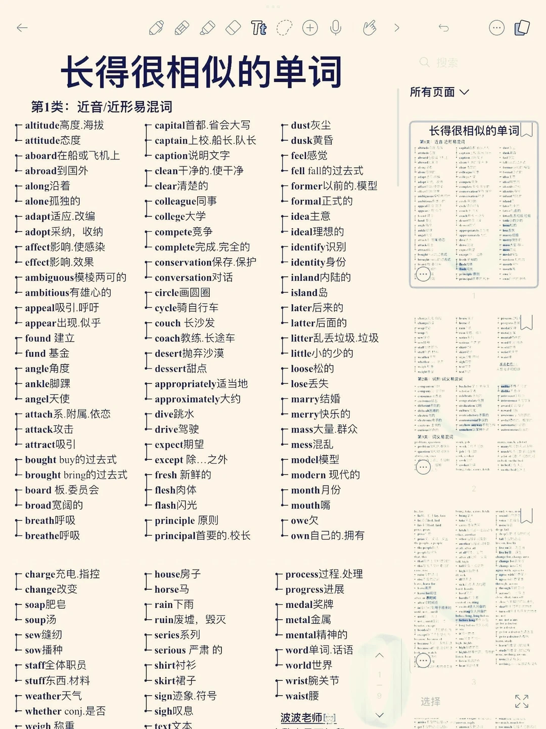 一次性消灭!长的好相似的易混词!共100组!