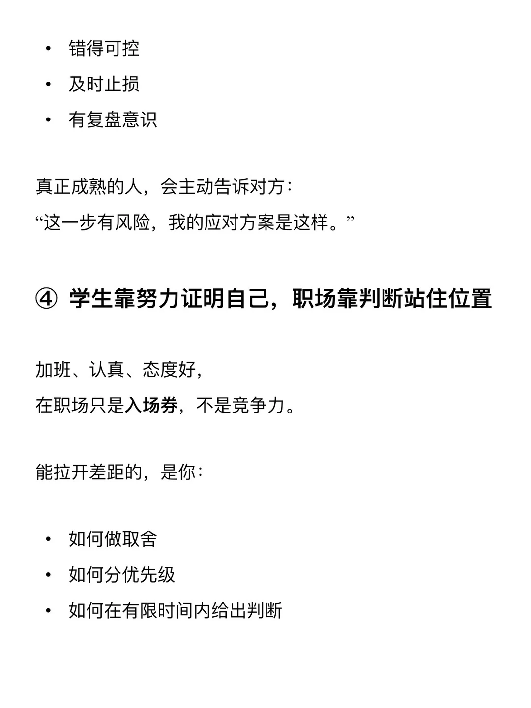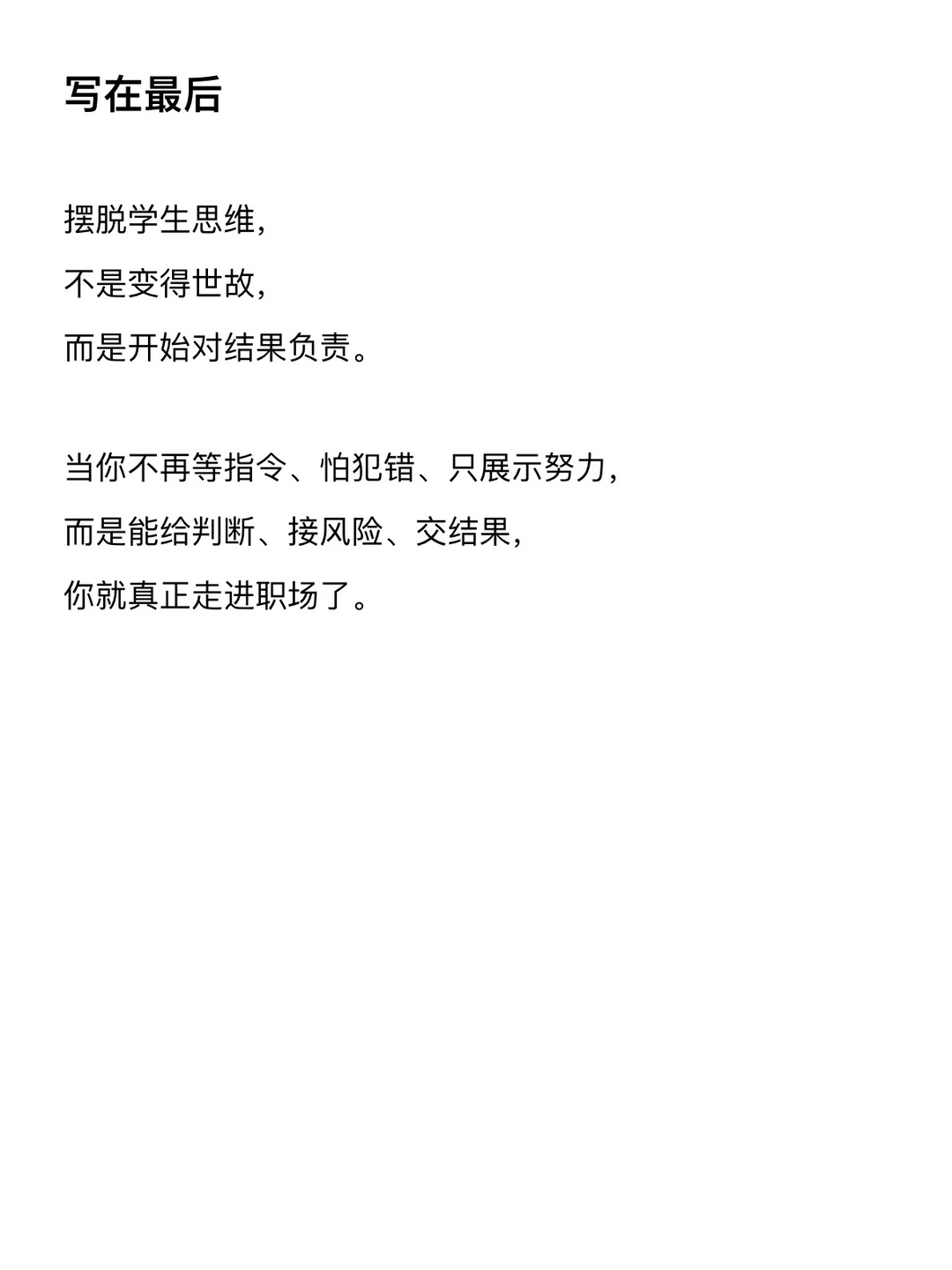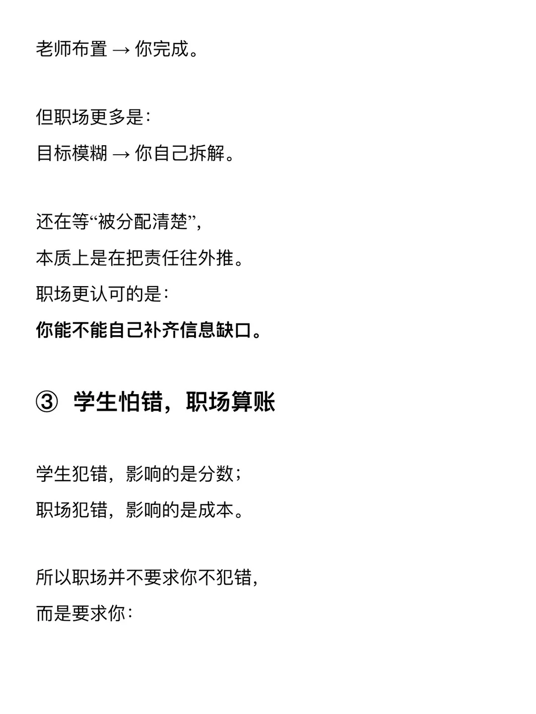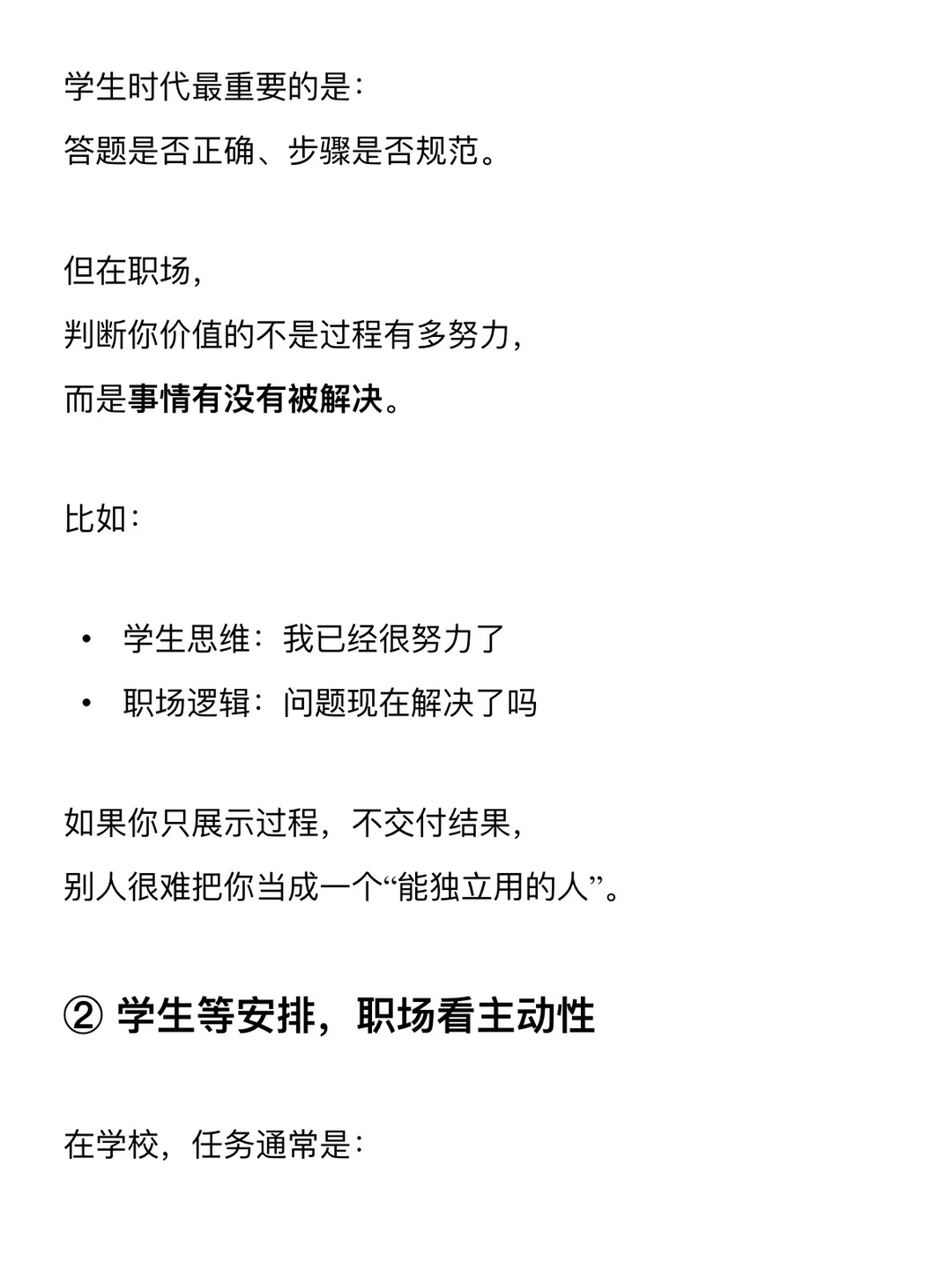 很多人不是能力不够, 而是还在用“学生时代的好习惯”在职场里求生。 这些习惯在学校是加分项, 到了职场,反而会悄悄拖住你。 … 一个认真分享“找工作”干货的账号,真诚、有料、不说空话 ·