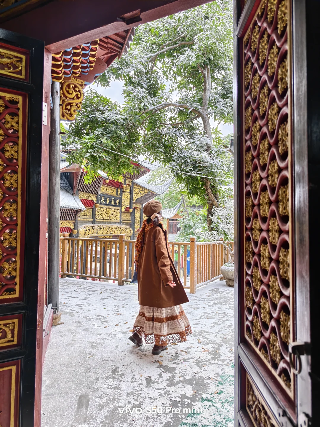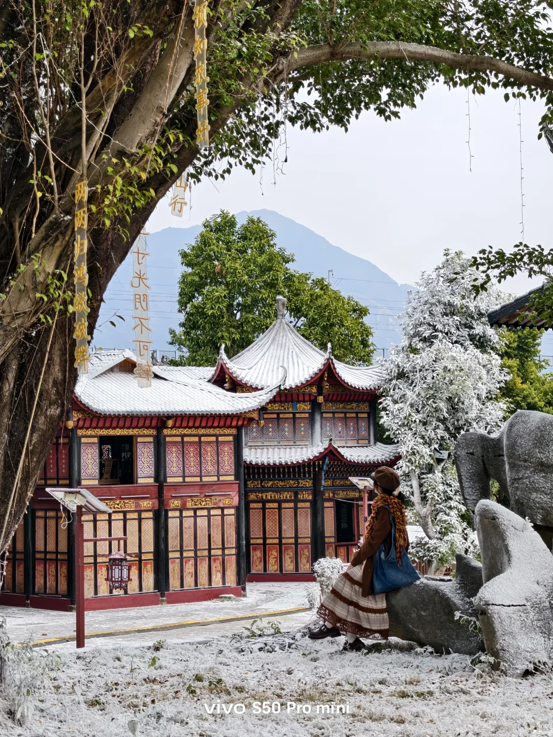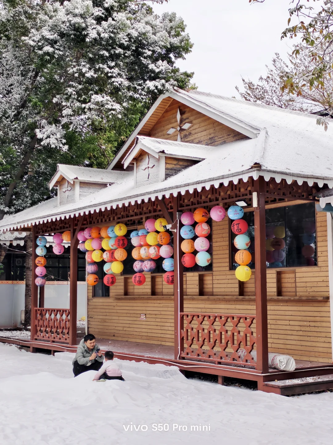 ✔️虽然是人造雪景,但布置的挺逼真的,加上古风建筑,还挺出片的,很适合拍新春照