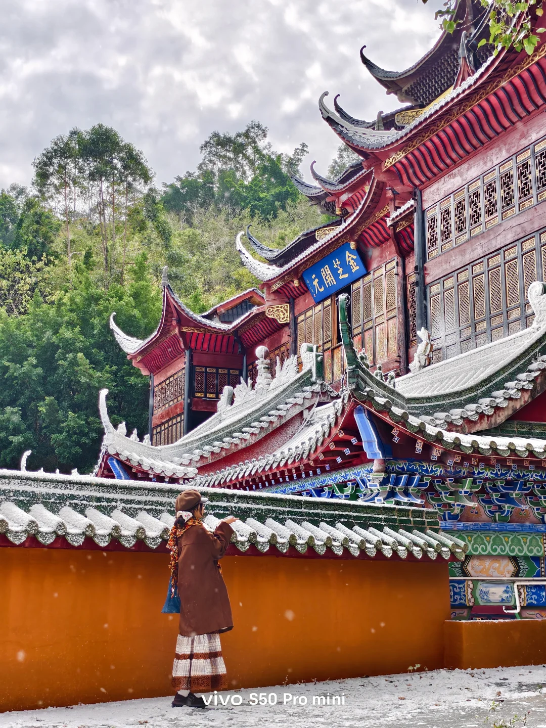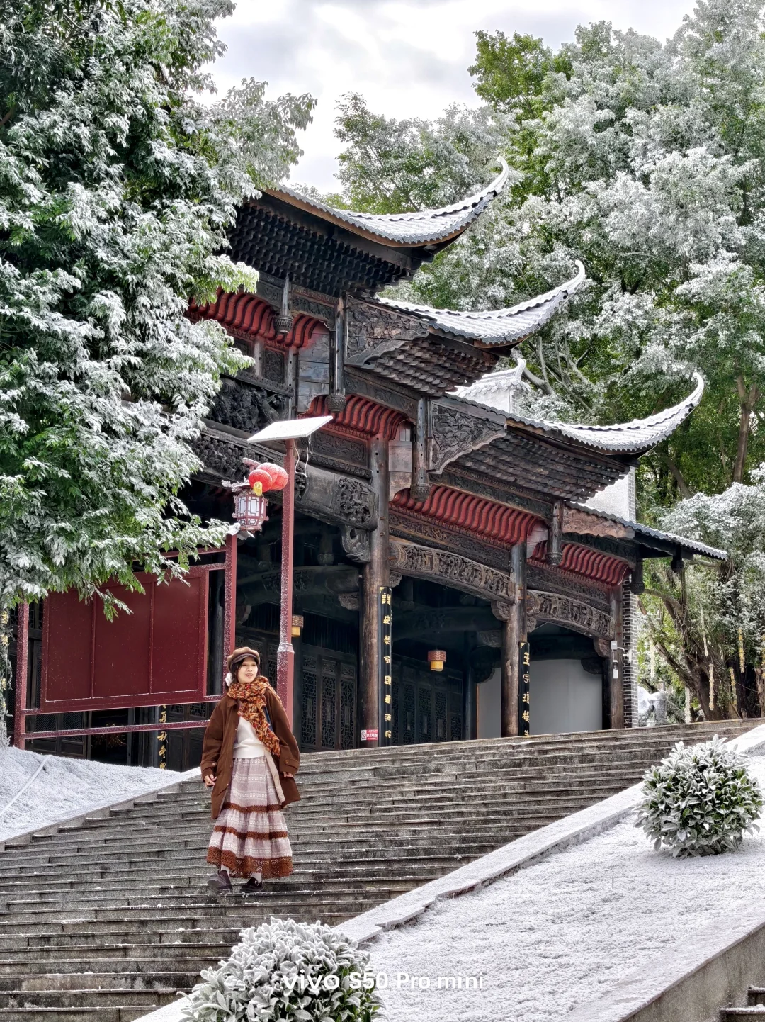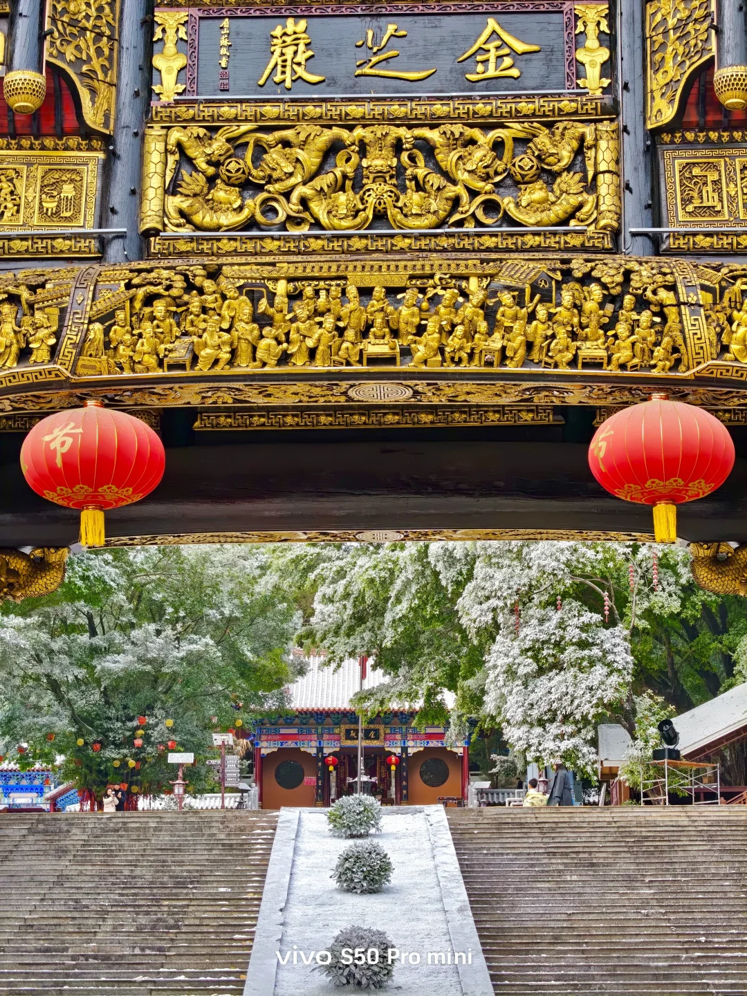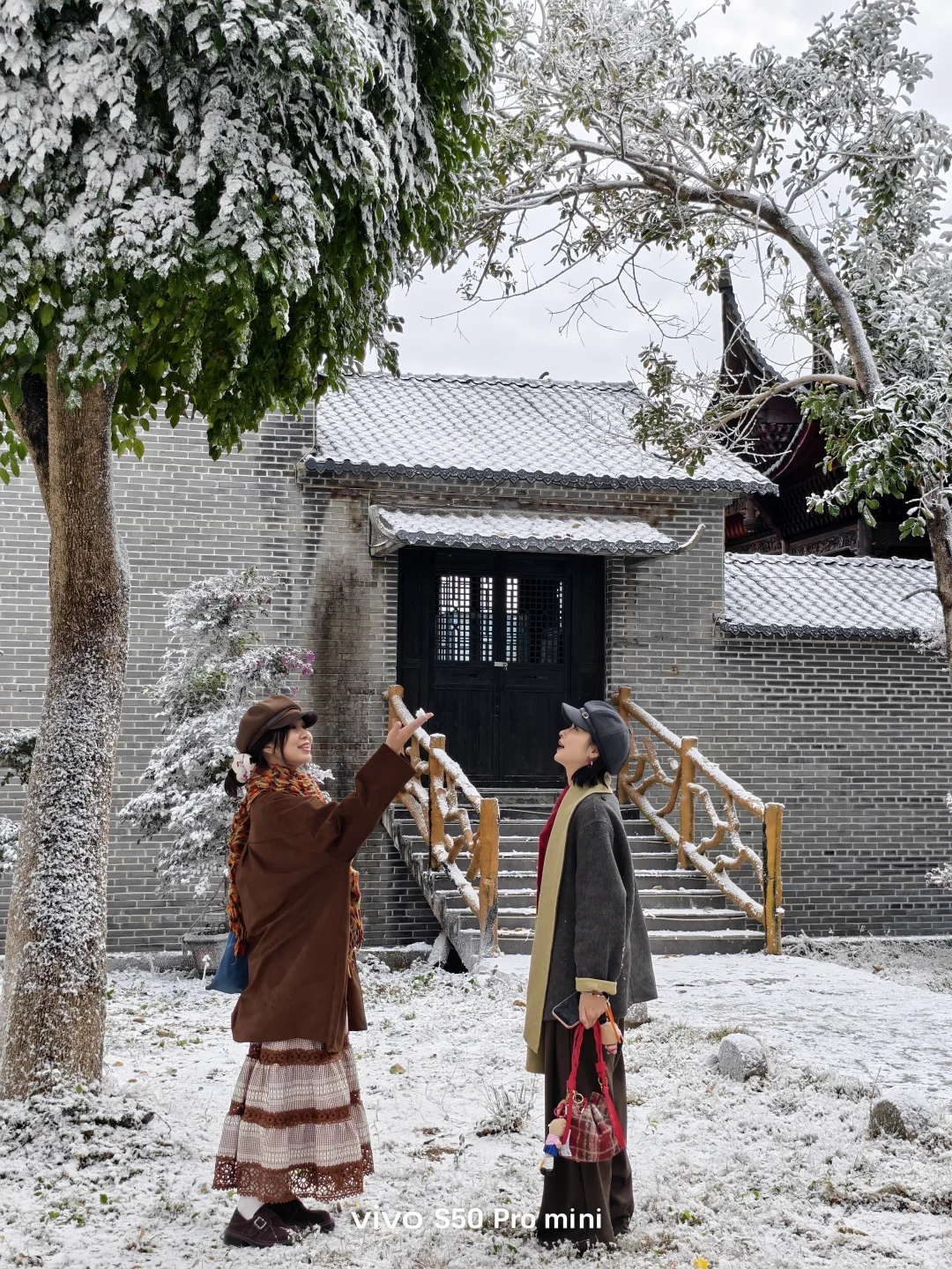 ✔️虽然是人造雪景,但布置的挺逼真的,加上古风建筑,还挺出片的,很适合拍新春照
