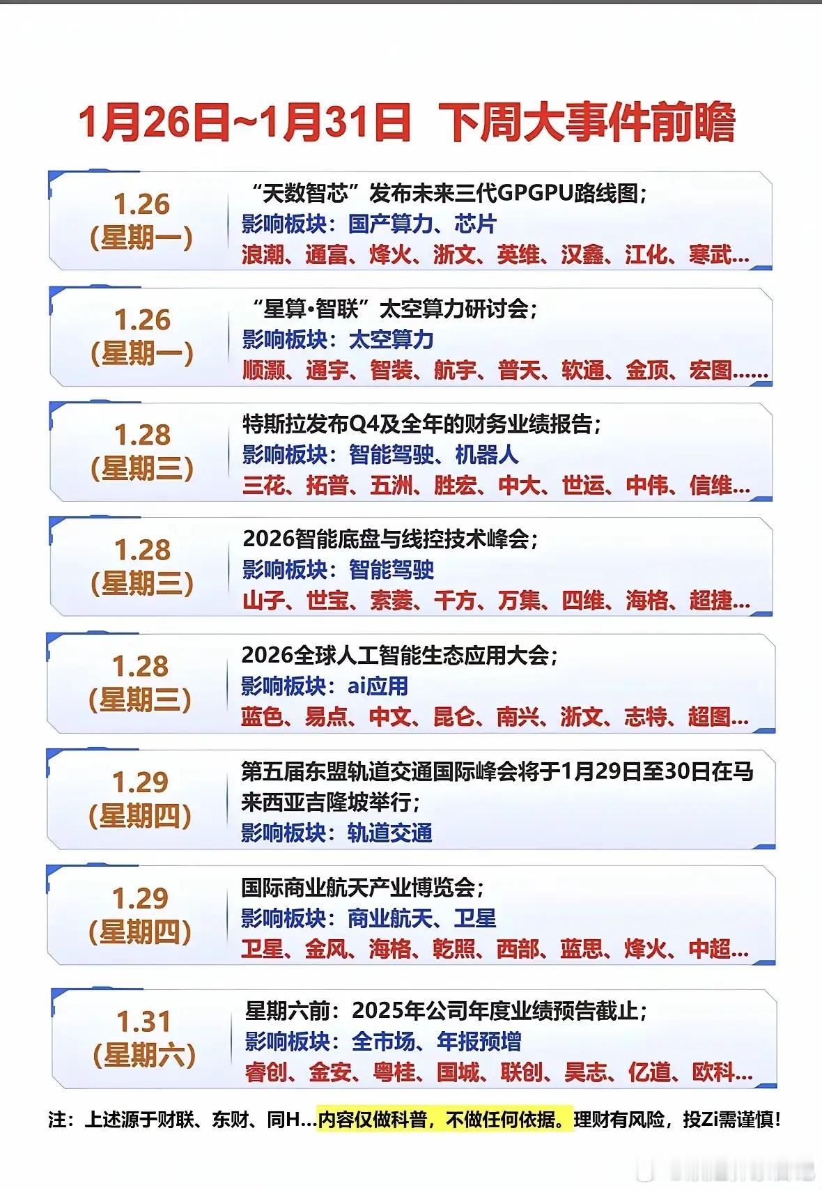 1月25日,星期日,热门人气股点评雪人集团:反弹延续,注意节奏隆基绿能:太空光伏,闻风而动东方日升:上板突破,意犹未尽航天发展:量价配合,回升初现西部材料:拉板有力,看好后续乾照光电:反弹上板,还有预期钧达股份:缩量连板,还有一冲中际旭创:破位调整,观望为宜通富微电:区间波动,方向未变利欧股份:地板拉起,高抛低吸金风科技:强势反弹,延续升势香农芯创:震荡调整,逢低关注启迪环境:缓步上行,惯性仍在白银有色:期银暴涨,继续狂欢云南锗业:量价齐升,新高在即雪浪环境:长阳封板,谨防回撤雷科防务:反弹遇阻,均线压制中国卫星:尾盘封板,仅看反弹中金岭南:趋势行情,继续格局银河电子:中阳接力,观望为宜金发科技:震荡调整,耐心等待工业富联:震荡调整,观望为宜蓝思科技:反包多线,即将新高正泰电源:上板突破,空间打开卧龙电驱:震荡调整,延续趋势先导智能:长阳新高,逢高降仓华天科技:止跌反弹,行情未尽南山铝业:逐步加速,还有后戏九鼎新材:又创新高,打开高度世运电路:长阳封板,趋势上行锋龙股份:连板不停,停牌核查特变电工:三连阴跌,十日支撑四川长虹:震荡推升,结构稳定国晟科技:低位反抽,月线遇阻湖南白银:扶摇直上,看高不追中国黄金:长阳封板,谨慎看高迈为股份:跳空加速,溢价可期海格通信:量平回升,动能尚存蓝色光标:五连反弹,分批兑现太阳能 :突破多顶,空间打开信维通信:量稳走高,形态延续盛达资源:长阳封板,趋势上行广生堂 :长阳封板,谨慎看高中国卫通:风险提示,冲高可减巨力索具:缩量三连,新高有望烽火通信:板块带动,节奏加快北方稀土:稳住趋势,值得关注岩山科技:连续反弹,高抛低吸四川黄金:高歌猛进,滚动落袋山子高科:高位盘整,等待方向以个人观点,仅供参考!不作为投资建议。欢迎点赞、收藏加关注,不迷路!