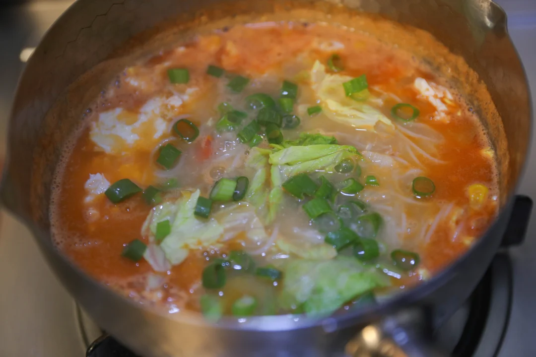 辣子鸡丁米粉红油咸香,香辣有味,米粉爽滑