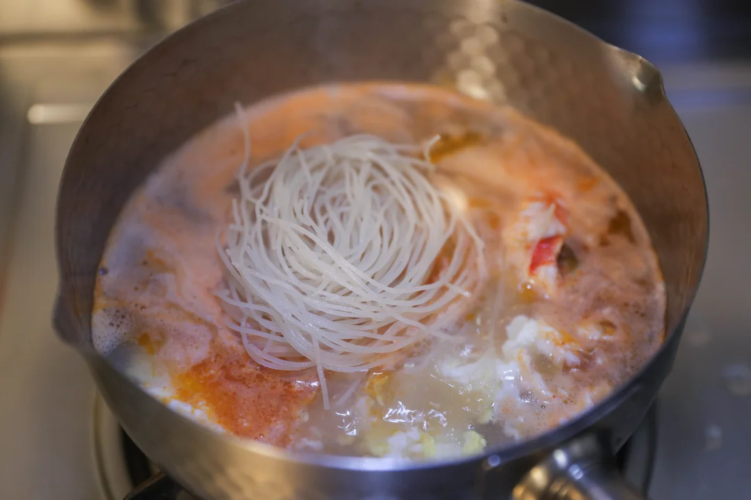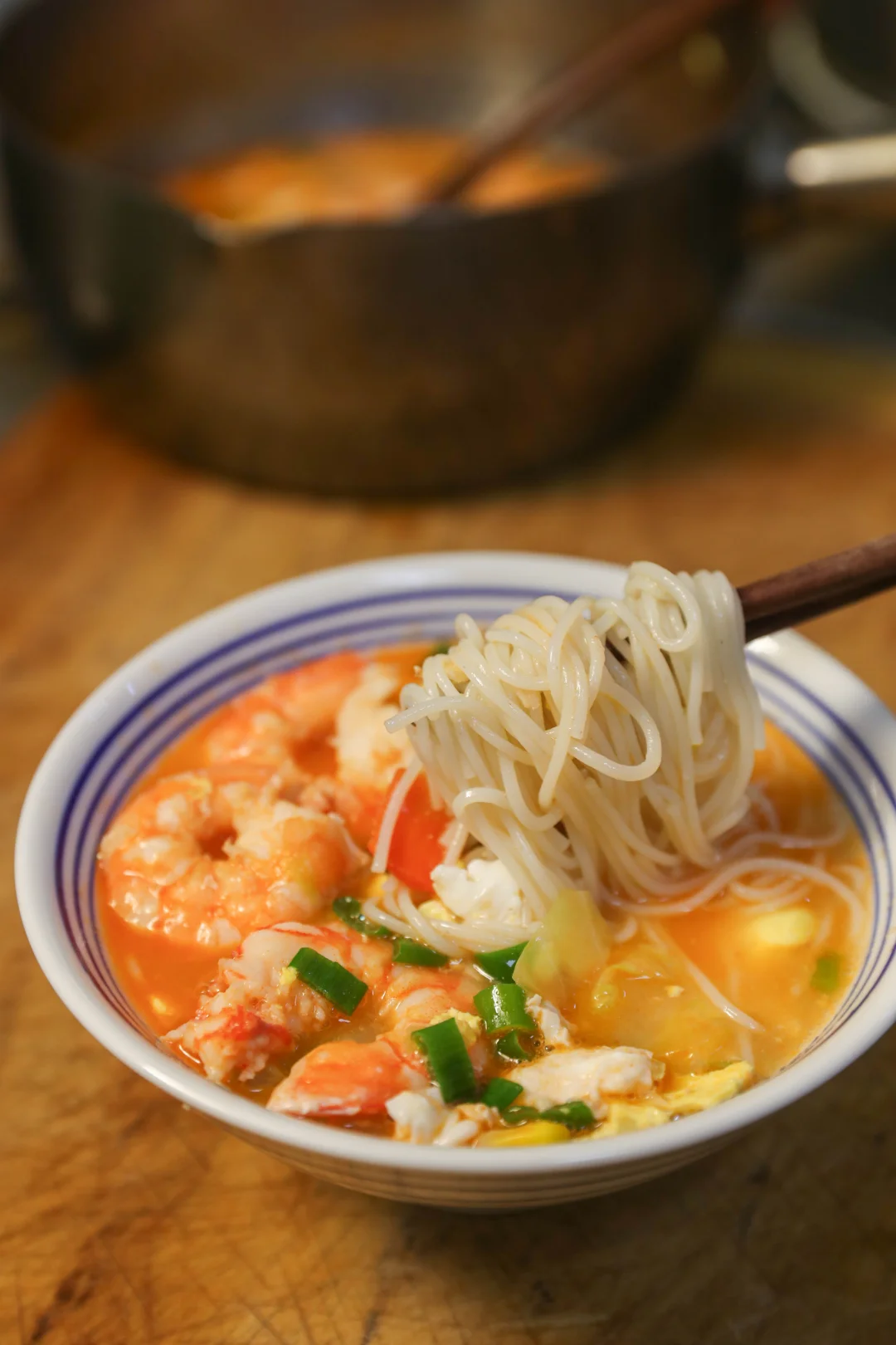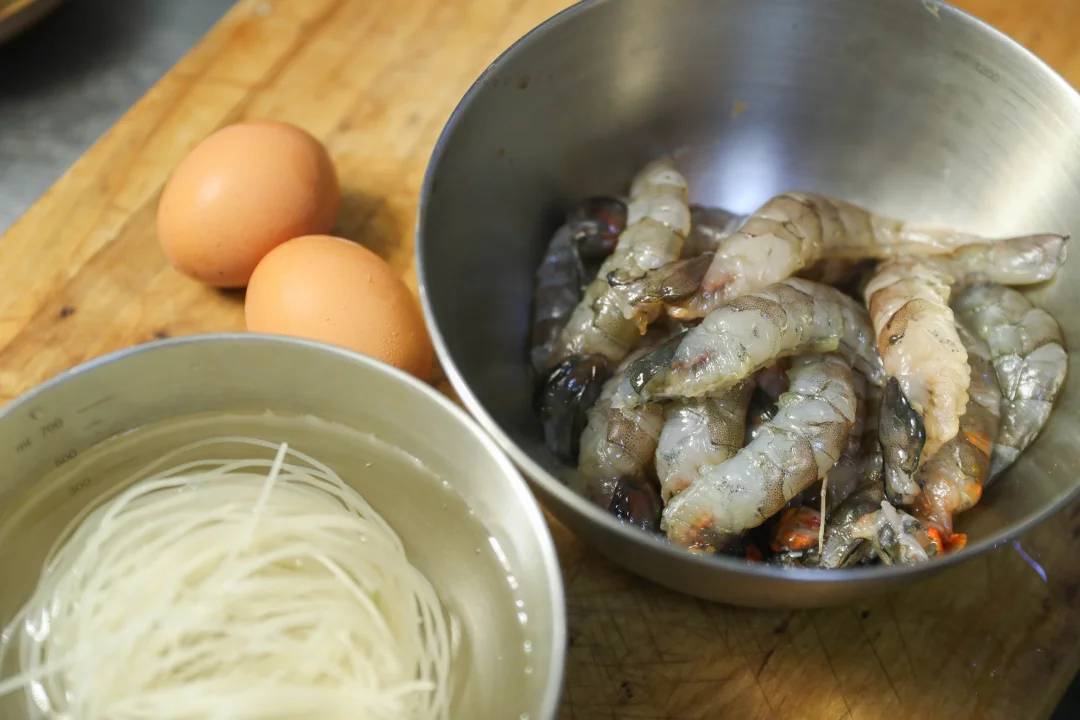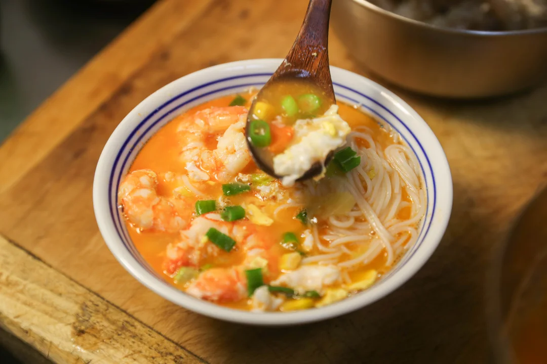 虾仁煎蛋汤粉(351)汤头鲜甜米粉爽滑筋道