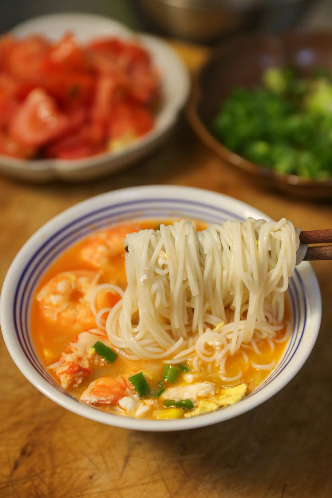 中午做了虾仁煎蛋汤粉,简简单单一餐,又是一顿午饭。 材料也很简单,虾仁、鸡蛋和少许青菜。 调味料只有盐。面食 面条的花样做法