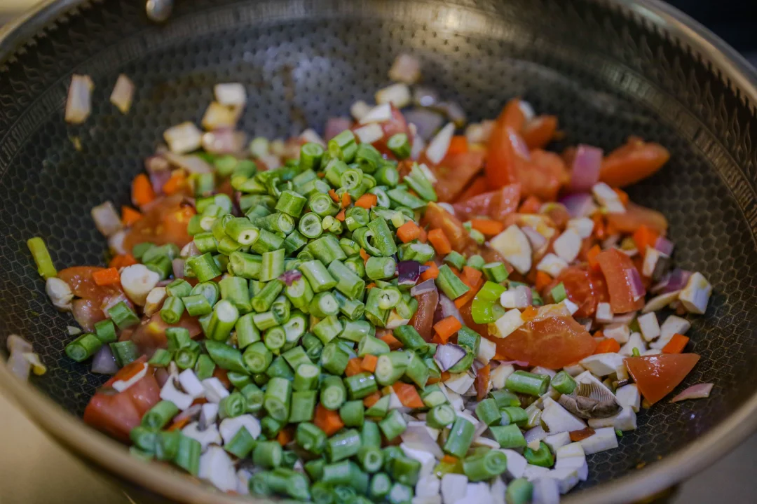 坚持做1000种面不重样(308)蒜苔火腿拌米粉